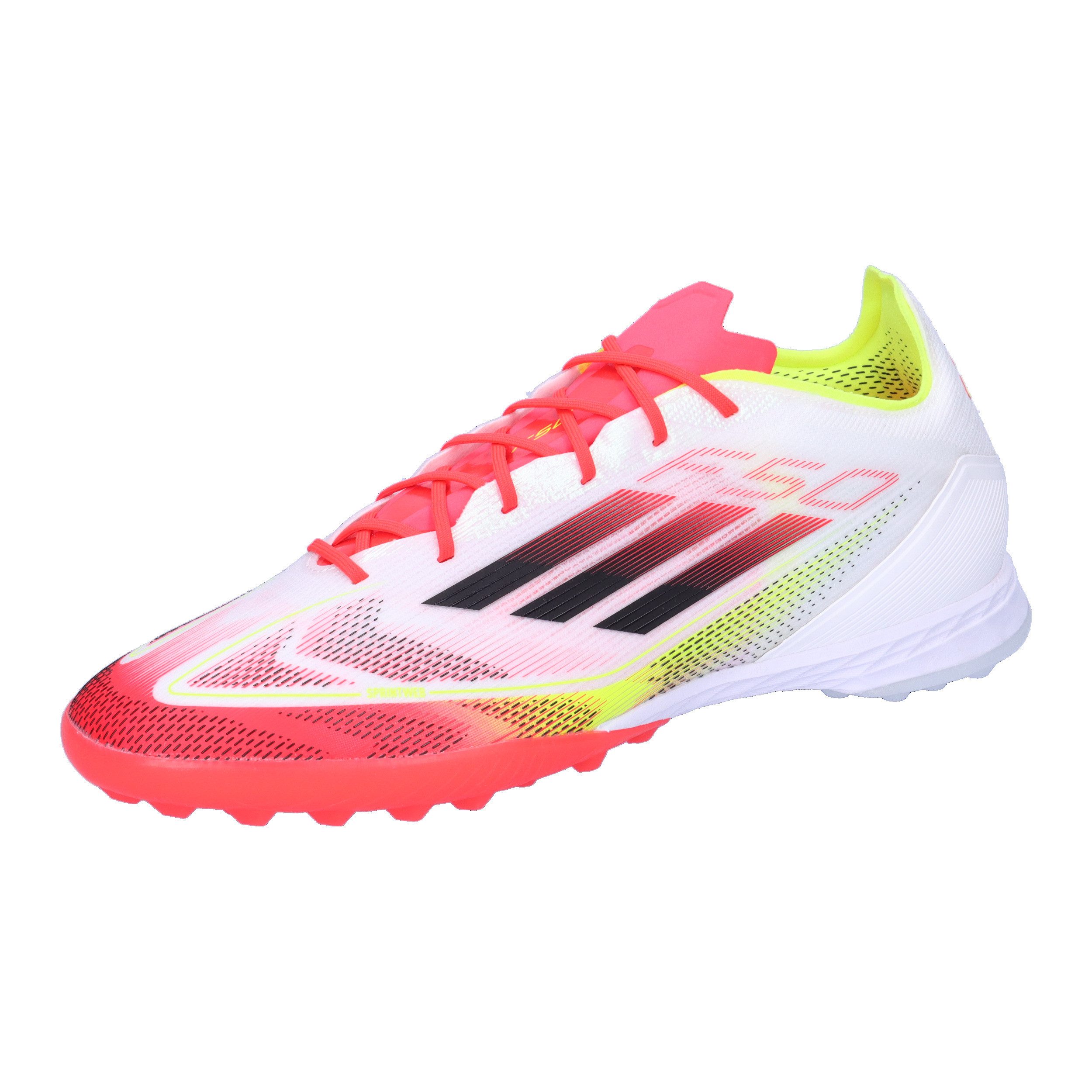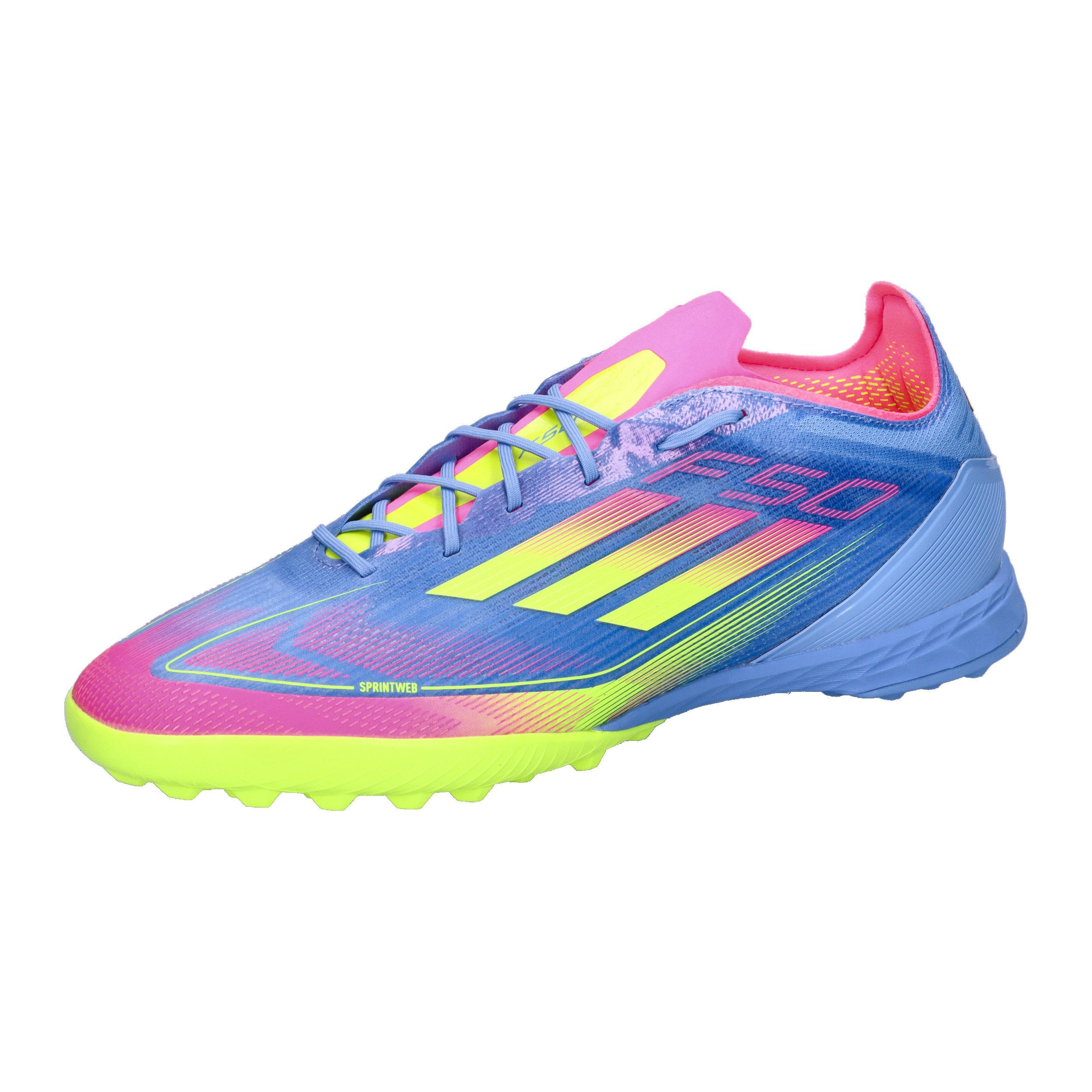 adidias Unisex Fußballschuhe F50 PRO TF. Durch und durch auf Speed getunt – mit diesem leichten adidas F50 pushst du das gegnerische Team ans Limit. Ausgestattet mit dem Fibertouch Obermaterial ermöglicht diese leichte adidas Pro Version mit der Sprintweb 3D-Struktur gekonnte Highspeed-Dribblings. Und die Tunnel-Zunge mit Kompressionspassform stellt sicher, dass er bei temporeicher Action auf dem Spielfeld immer sicher am Fuß sitzt. Die genoppte Gummiaußensohle und die Lightstrike Zwischensohle ermöglichen dir außerdem blitzschnelle Moves auf kurzem Kunstrasen, Hart- und Aschenplätzen. Dieses Produkt ist mit mindestens 20 % recycelten Materialien hergestellt. Die Wiederverwendung bereits vorhandener Materialien hilft uns dabei, Müll zu reduzieren, unsere Abhängigkeit von nicht erneuerbaren Ressourcen einzuschränken und den CO2-Fußabdruck unserer Produkte zu verringern. Dieser TF Fußballschuh ist für Speed designt. Obermaterial: Sonstiges Material. Futter und Decksohle: Textil. Laufsohle: Sonstiges Material.