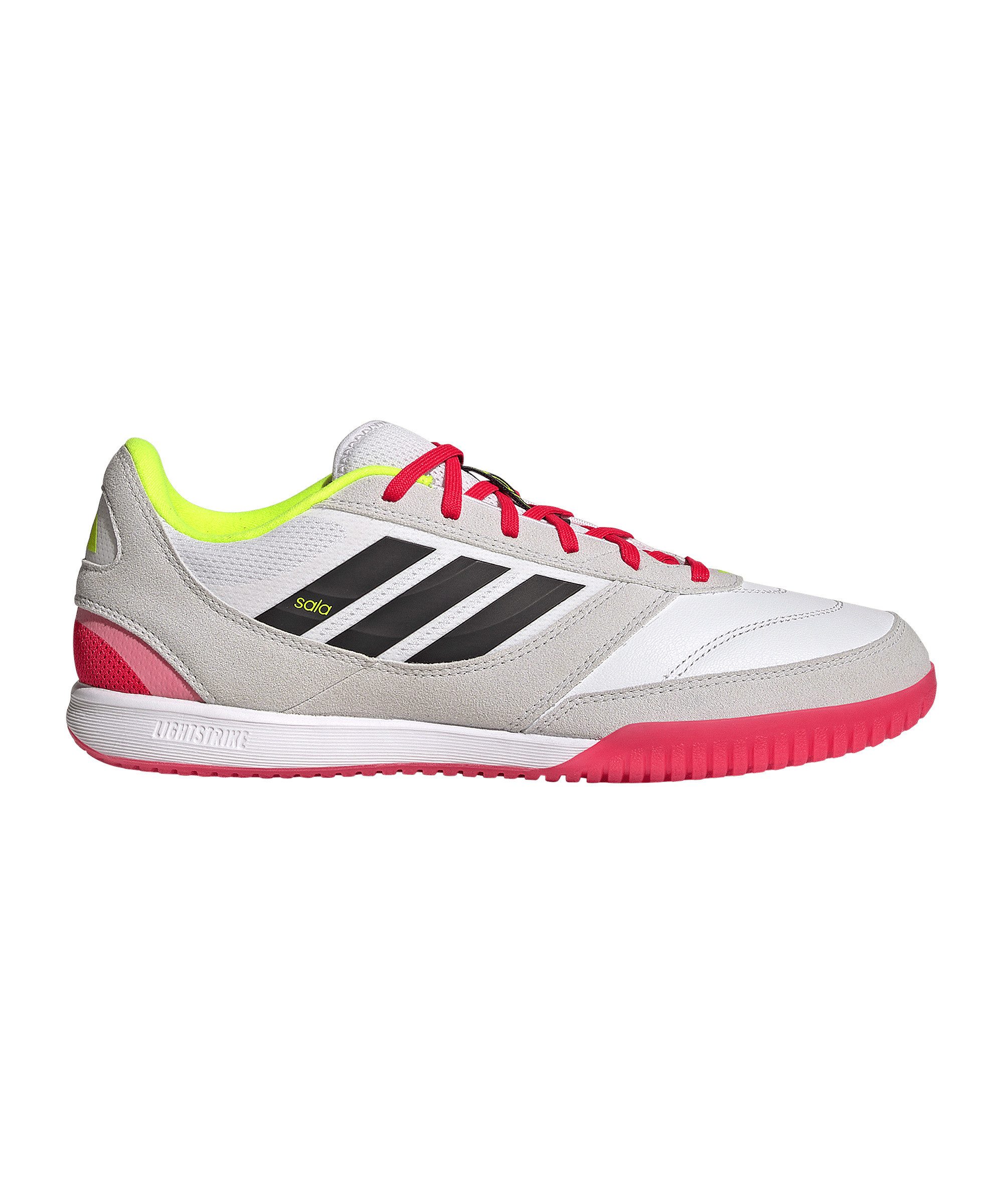 Das Top-Sala-Modell in Erwachsenen-Grouml;szlig;en in universeller Passform fuuml;r Herren und Damen ist interessant fuuml;r alle, die griffige Hallenfuszlig;ballschuhe fuuml;r Futsal und Kleinfeldformate suchen. Mit dem adidas Top Sala holst du dir gute Features zu einem interessanten Preis an deine Fuuml;szlig;e.
