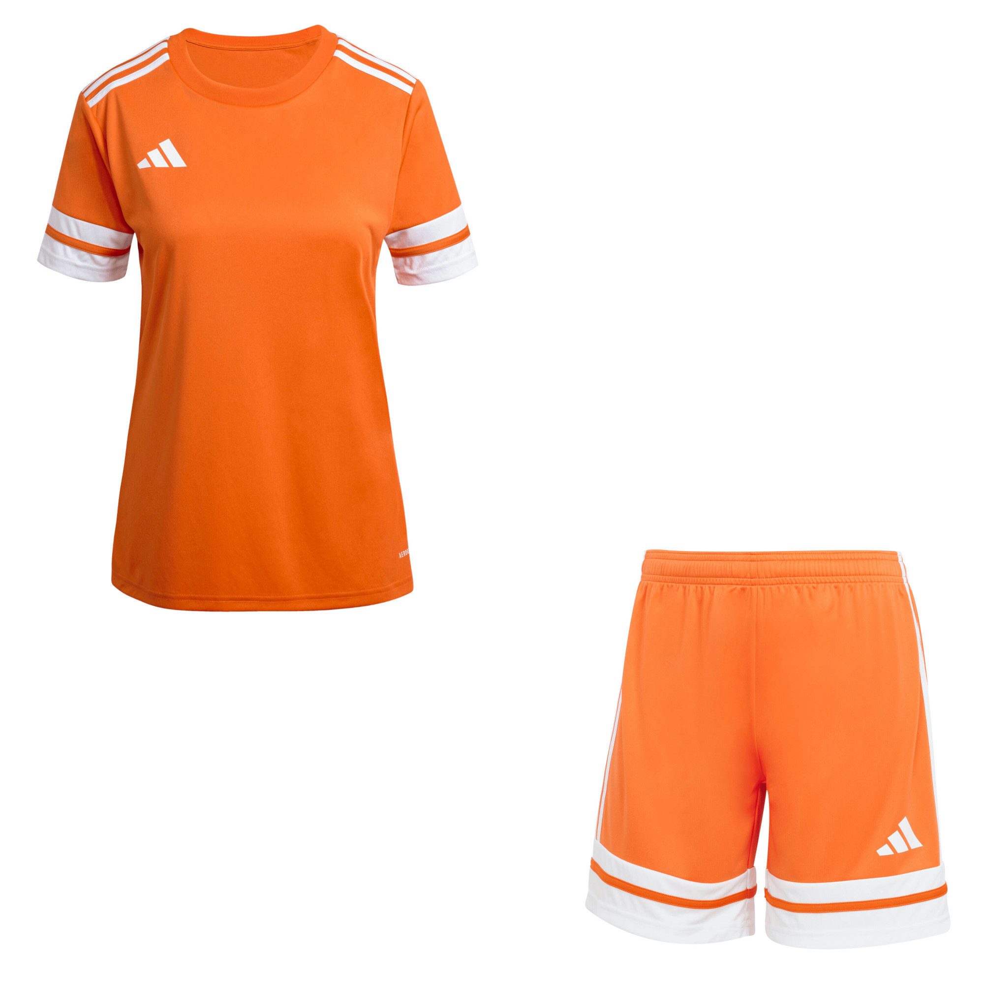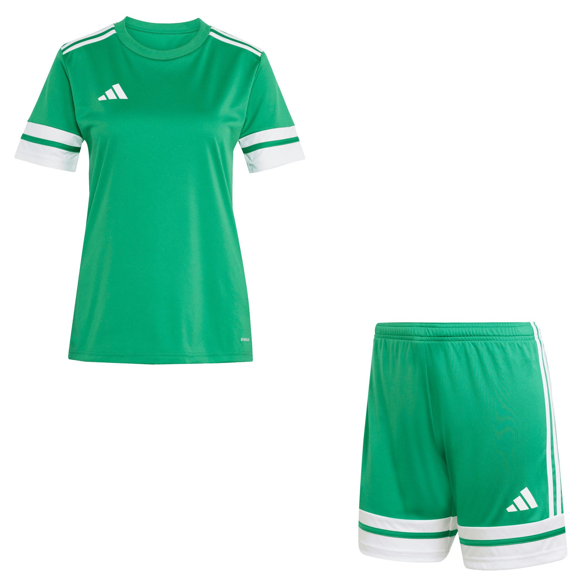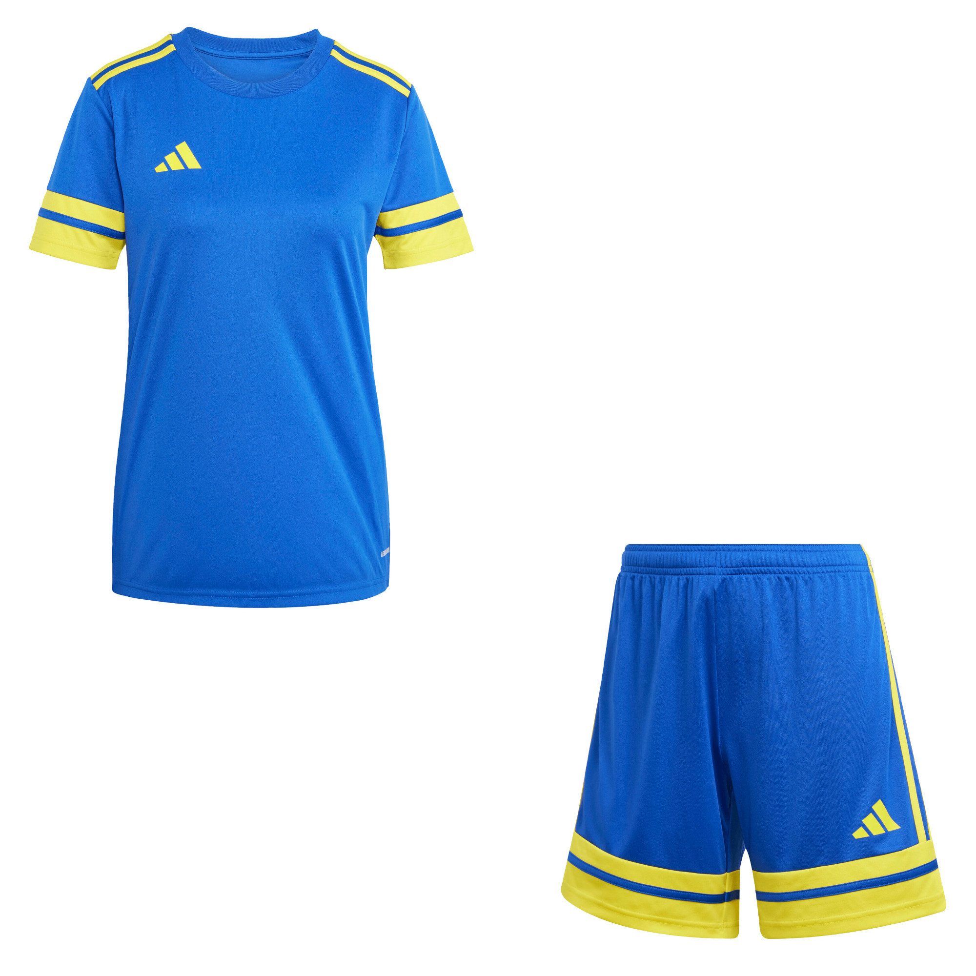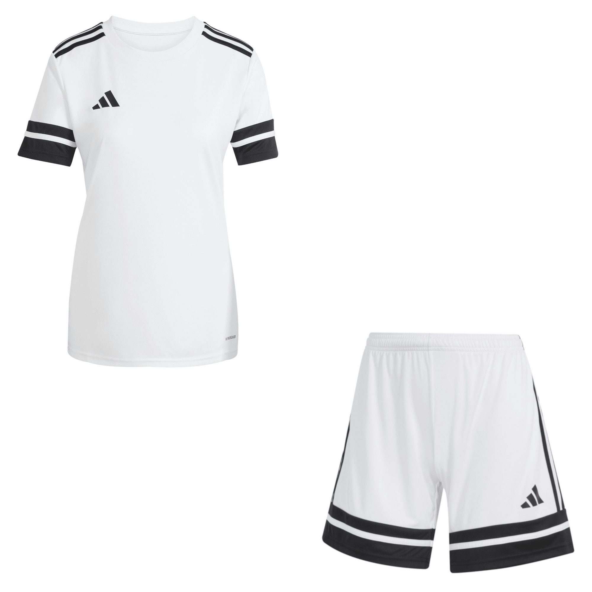adidas Damen Set Trikot + Hose Squadra 25. Trikot Set bestehend aus Trikot und Short. Trikot: Mit diesem adidas Trikot fühlst du dich auf dem Fußballplatz als Teil eines Teams und demonstrierst Zusammenhalt. Es kommt mit einem gerippten Rundhalsausschnitt und den legendären 3-Streifen an den Schultern. Ansonsten ist es schön clean gehalten und bietet Platz für deine eigenen Teamdetails. On top garantiert die feuchtigkeitsabsorbierende AEROREADY Technologie ein angenehm trockenes Tragegefühl, damit du dich ablenkungsfrei aufs Spiel konzentrieren kannst. Dieses Produkt ist mit 100 % recycelten Materialien hergestellt. Die Wiederverwendung bereits vorhandener Materialien hilft uns dabei, Müll zu reduzieren, unsere Abhängigkeit von nicht erneuerbaren Ressourcen einzuschränken und den CO2-Fußabdruck unserer Produkte zu verringern. Regulär geschnitten. Gerippter Rundhalsausschnitt. AEROREADY. Platz für individuelle Details. Short: Diese adidas Shorts bieten den perfekten Mix aus Performance und Style und demonstrieren Zusammenhalt auf dem Platz. Der Bund mit Kordelzug sorgt für eine individuelle Passform und die feuchtigkeitsabsorbierende AEROREADY Technologie garantiert dir ein bequemes Tragegefühl, wenn du dein Können unter Beweis stellst. Kombiniert mit dem Squadra 25 Trikot wird ein Profi-Look draus, der zu deinem Spiel passt. Dieses Produkt ist mit 100 % recycelten Materialien hergestellt. Die Wiederverwendung bereits vorhandener Materialien hilft uns dabei, Müll zu reduzieren, unsere Abhängigkeit von nicht erneuerbaren Ressourcen einzuschränken und den CO2-Fußabdruck unserer Produkte zu verringern. Regulär geschnitten. Elastischer Bund mit Kordelzug. AEROREADY. Material: 100% Polyester.