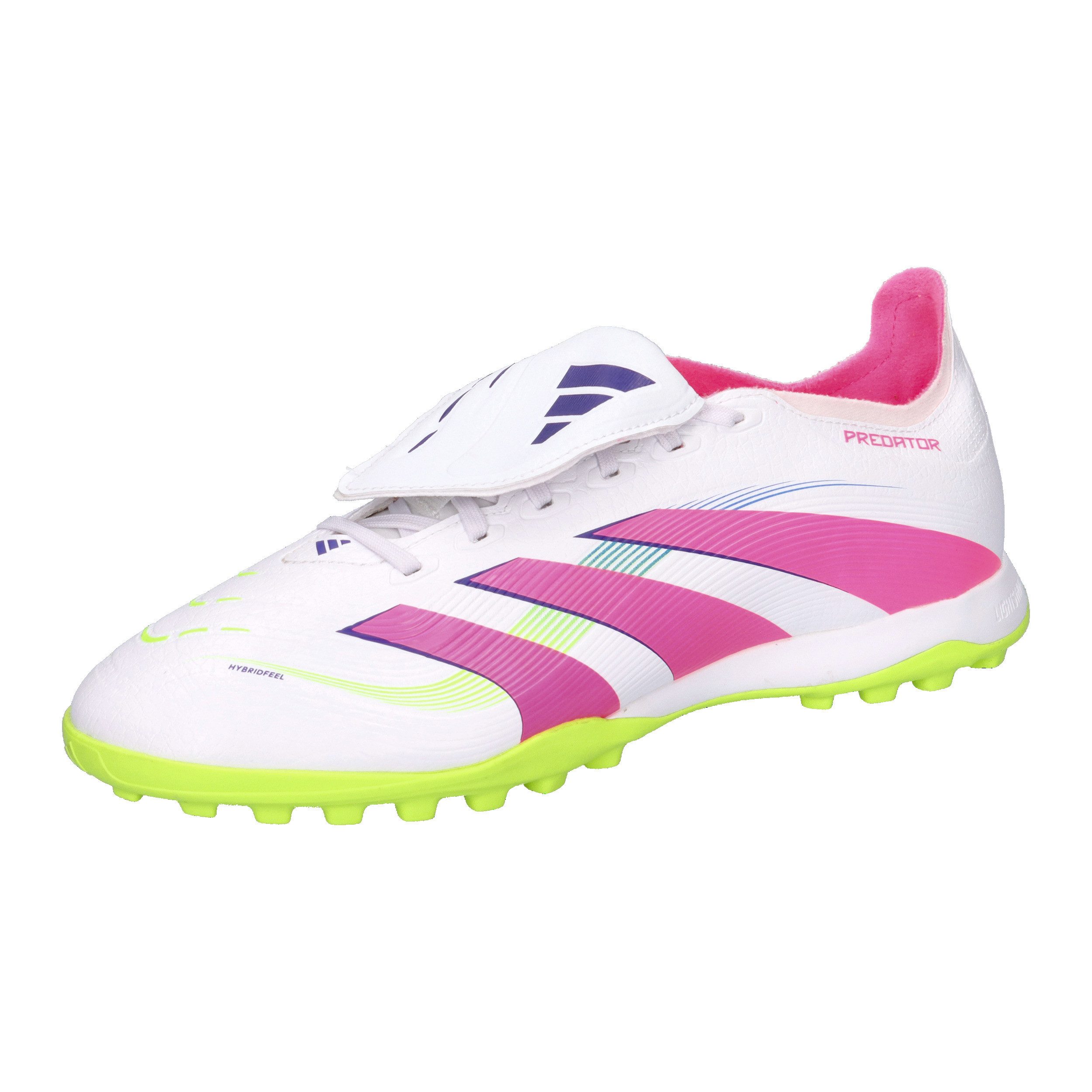Mit dem adidas Predator League weißt du schon beim Anpfiff, dass dein nächster Treffer nicht lange auf sich warten lässt. Das Hybridfeel Obermaterial kommt mit einer Allover-3D-Struktur, einer umschlagbaren Zunge und griffigen Strikescale Gummilamellen für überragende Ballkontrolle. Außerdem garantiert die Kombi aus genoppter Gummiaußensohle und dämpfender Lightstrike Zwischensole optimale Performance auf kurzem Kunstrasen, Hart- und Aschenplätzen.