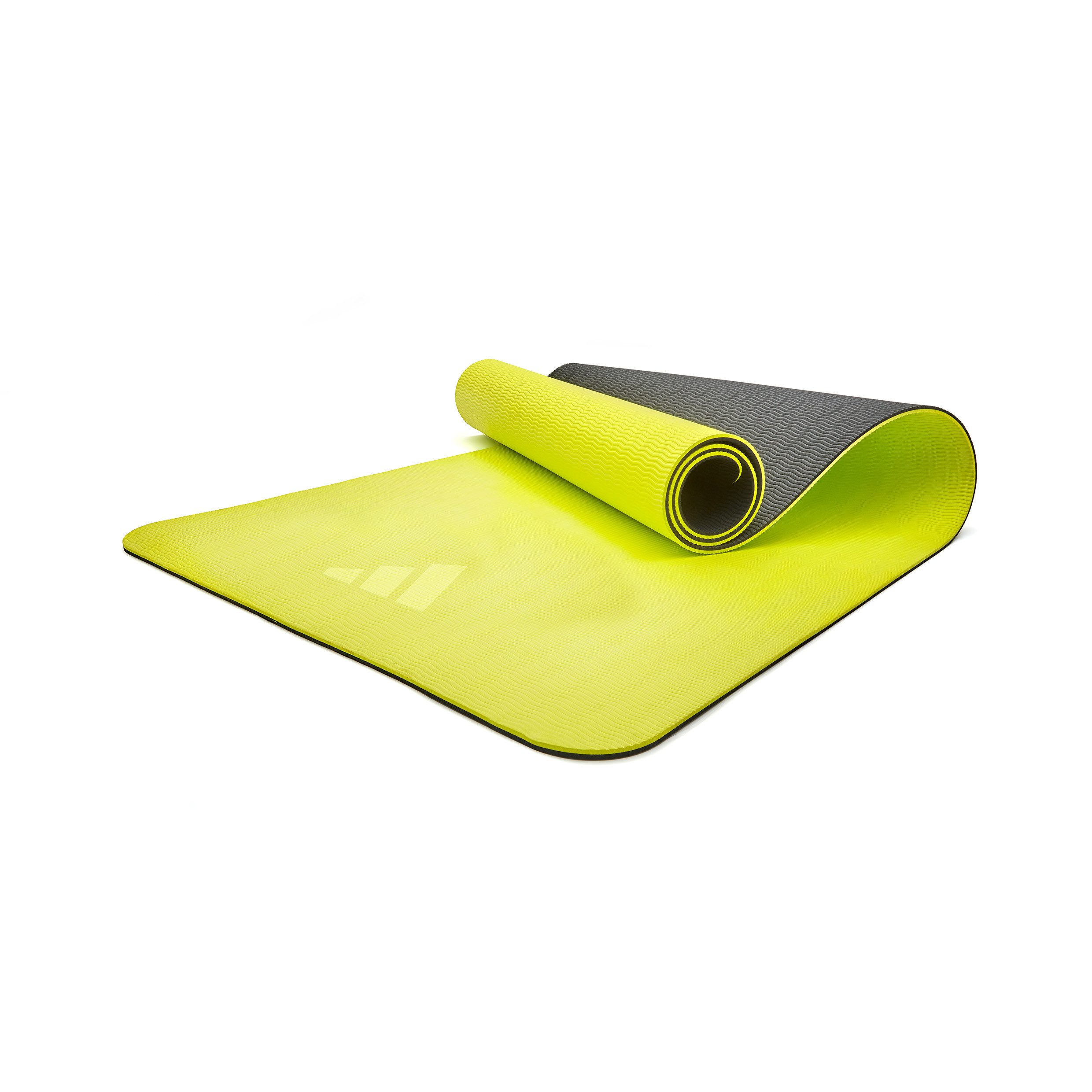 Die doppelseitige Matte ist mit einem stilvollen und funktionellen Tragegurt ausgestattet und lässt sich nach dem Training schnell und einfach verstauen. Die 176 (L) x 61 (B) cm große Matte ist ideal für die Verwendung barfuß oder mit Yogasocken und für alle Benutzer geeignet. Abgerundet wird sie durch ein stilvolles, lasergraviertes Adidas-Sportlogo.