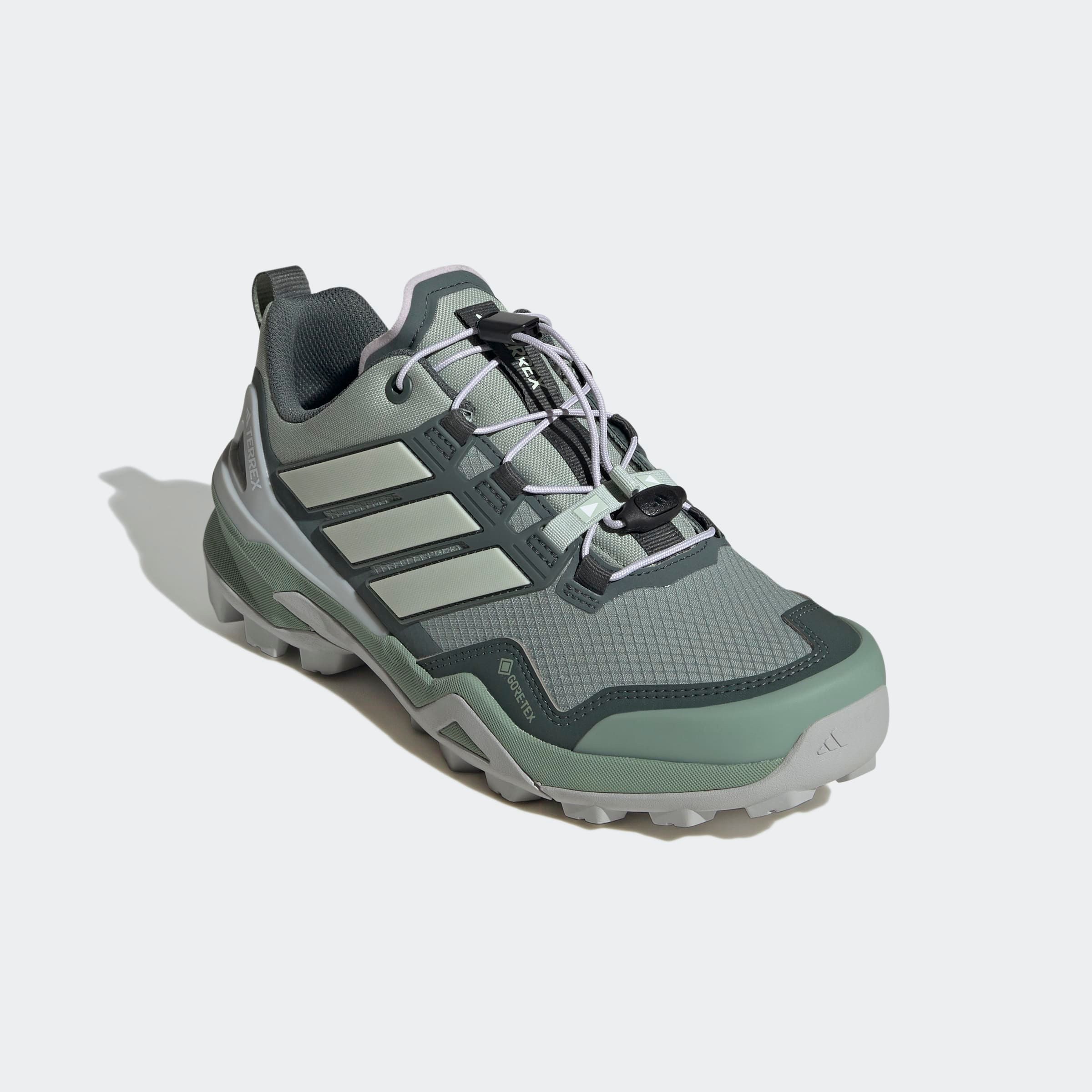Ob auf einer Wanderung oder Gipfeltour – mit dem adidas Terrex Skychaser Wanderschuh navigierst du jedes Gelände schnell und kontrolliert. Außerdem profitierst du von hohem Tragekomfort und einem Plus an Schutz. Er kombiniert das agile, reaktionsfreudige Tragegefühl von Trailrunning-Schuhen mit dem Halt und der Strapazierfähigkeit von Wanderschuhen. Damit dich auf dem Weg zum Ziel nichts ausbremst, ist er außerdem schön leicht und bequem. Zum Schutz vor Nässe und für ein angenehmes Temperaturmanagement ist der Schuh mit einer wasserdichten GORE-TEX EPE Membran ausgestattet. Und damit du möglichst lange Freude an ihm hast, kommt das Obermaterial aus Ripstop mit abriebfesten, strapazierfähigen Overlays. Continental™ Gummi sorgt für Grip auf jedem Untergrund, egal ob bei trockenen oder nassen Bedingungen. Die ultraleichte Lightstrike Dämpfung garantiert zudem ein reaktionsfreudiges Tragegefühl und mehr Agilität. Durch den Einsatz von Recyclingmaterialien können wir bereits vorhandene Gewebe und Fasern wiederverwenden und so dazu beitragen, Müll zu reduzieren. Auch erneuerbare Materialien sind ein Weg, uns weniger abhängig von nicht erneuerbaren Ressourcen zu machen. Unsere Produkte, die mit einem Mix aus recycelten und erneuerbaren Materialien hergestellt sind, bestehen zu mindestens 20 % aus diesen Materialien.