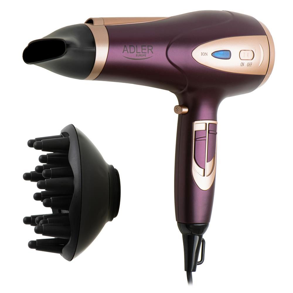 Der Haartrockner AD 2248 mit Ionisator ist die erste Wahl für besonders anspruchsvolle Menschen, denen ihr Haar und dessen schönes Aussehen am Herzen liegen. Der Haartrockner ist mit einem ION-Schalter mit Kontrollleuchte ausgestattet (bei eingeschaltetem Schalter wechselt die Farbe von blau zu grün). Darüber hinaus verfügt der Haartrockner über eine unabhängige Regelung sowohl der Luftgeschwindigkeit als auch der Temperaturstufe, einschließlich der Kaltlufttaste zum Fixieren der Frisur. Der Haartrockner hat einen herausnehmbaren Luftansaugfilter. Das Set enthält einen Konzentrator und einen Diffusor.
