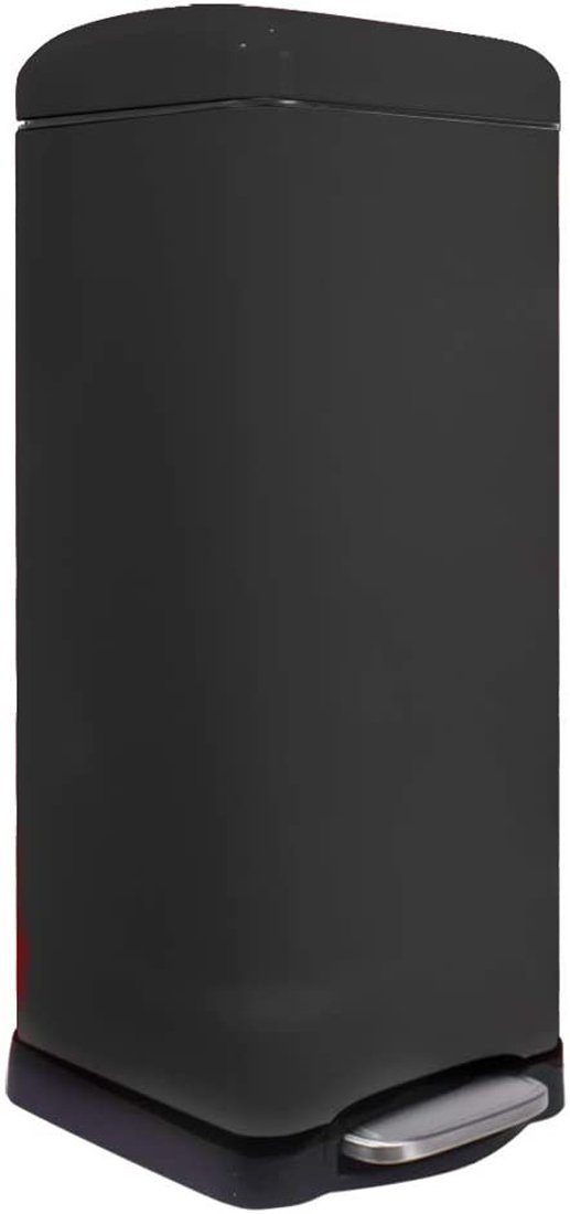 Rechteckiger Tretmülleimer matt Schwarz mit 30 Liter Fassungsvermögen von ADOB: Sie sind auf der Suche nach einem Abfalleimer mit Pedalöffnung, zum Beispiel für die Küche oder Ihr Büro? Dieser praktische Abfalleimer ist überall einsetzbar. Gefertigt aus gebürstetem Metall ist er sehr robust. Durch seine Grösse (68 x 34 x 28 cm, Fassungsvermögen 30 Liter) ist er perfekt einsetzbar, ob Küche, Bad, Büro, Wohnzimmer, Keller oder in der Garage. Ein Tritt auf das extra starke und grosse Metall - Pedal und der Deckel öffnet sich. Er schliesst wieder Sanft und Leise durch eine Absenkautomatik. Auf der Rückseite hat er einen Transportgriff. Im Inneren befindet sich ein Inneneimer aus Kunststoff. Dieser ist herausnehmbar und einfach zu reinigen. Einfach und schnell Ordnung und Sauberkeit halten! Sie werden zufrieden sein mit diesem praktischen Produkt von ADOB. ADOB, seit 1921 Produkte für Sie und Ihr Haus aus Deutschland.