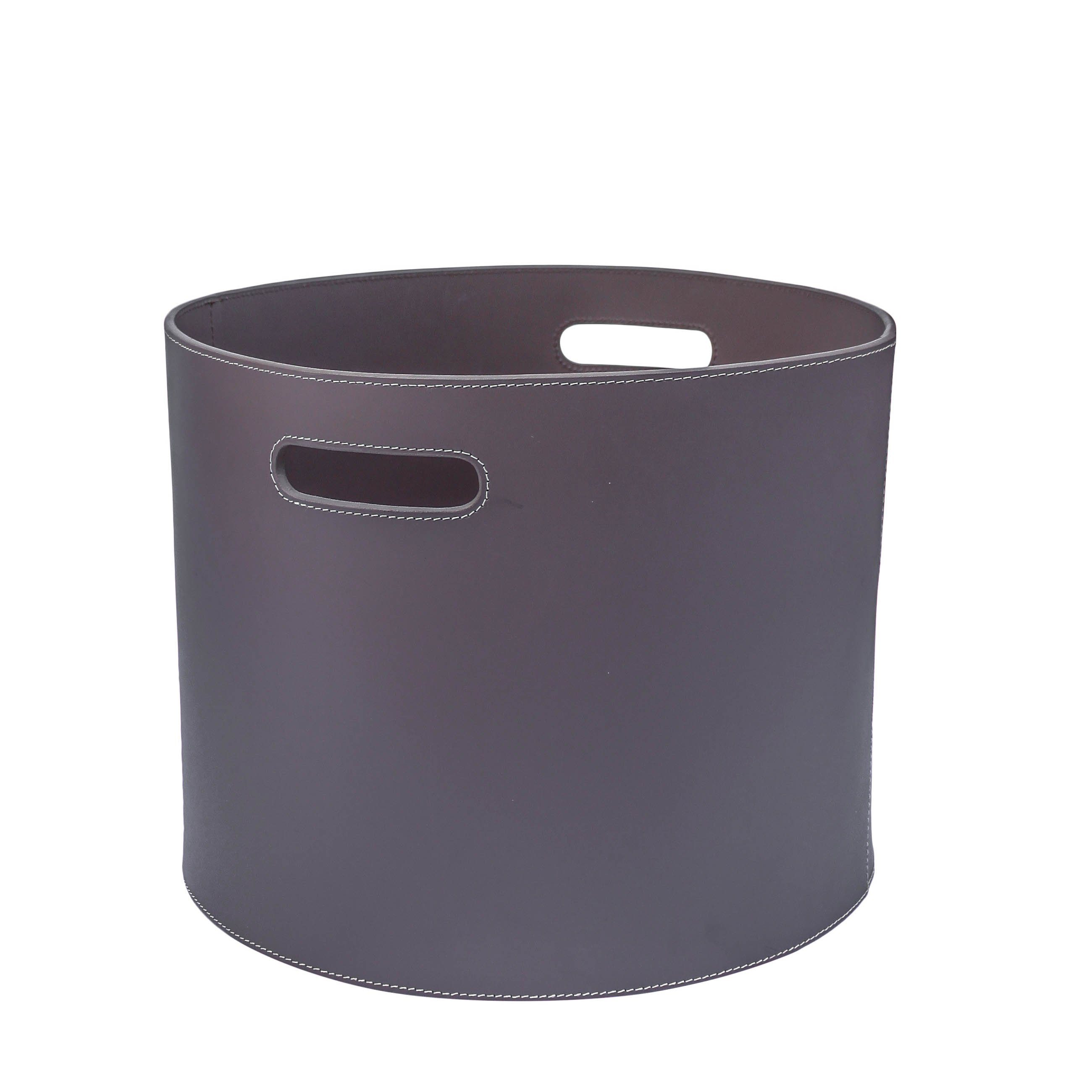 Runder, großer Kaminholzkorb aus Leder zur Aufbewahrung von Holzscheiten. Der praktische Korb mit 2 Tragegriffen schafft nicht nur Ordnung, sondern macht mit seiner runden Form und hochwertigen Verarbeitung stets eine gute Figur. Der Lederkorb bietet durch seine Размер mit einem Durchmesser von 40cm viel Platz, damit Ihr Kaminholz ordentlich und sauber verstaut ist. Zum Material: Leder vegetabil gefärbt. Der Griff und die Struktur sind sehr belastbar und hochwertig verarbeitet.