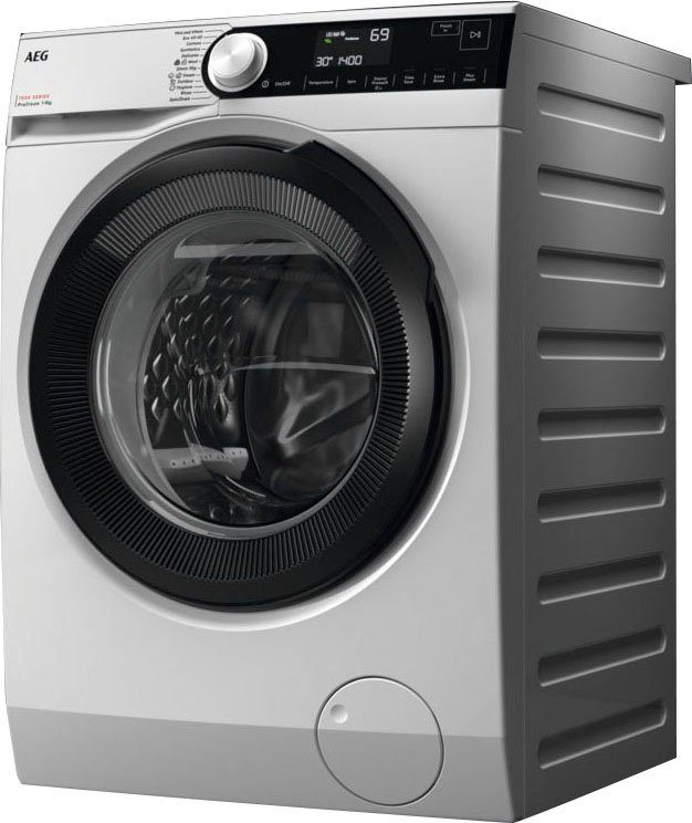 Die Waschmaschine LR7A70690 von AEG glänzt durch eine überzeugende Ausstattung. Die Energieeffizienzklasse A (Skala: A bis G) zeichnet diese Waschmaschine als besonders stromsparendes Modell aus. Mit 9 kg Fassungsvermögen eignet sich der Frontlader vor allem für Familien ab 5 Personen. Folgende Besonderheit zeichnet die LR7A70690 Waschmaschine aus: Nachlegefunktion. Das ProSense ist intelligent und praktisch. Es erkennt über Sensoren, wie viel sich in der Trommel befindet und passt die Dauer des Waschgangs und den Energieverbrauch daraufhin automatisch an. Mittels Startzeitvorwahl ist es möglich, das Programm der LR7A70690 Waschmaschine so einzuspeichern, dass die Wäsche fertig ist, wenn man beispielsweise von der Arbeit zurückkommt. Mit der praktischen Nachlegefunktion wird die Maschine während des Programms einfach angehalten und vergessene Wäscheteile können noch hinzugefügt werden. Mithilfe der Restlaufanzeige ist jederzeit erkennbar, wie viel Zeit von der Waschmaschine noch für den laufenden Waschgang benötigt wird. Die LR7A70690 Waschmaschine ist ebenfalls mit einer Kindersicherung ausgestattet. Die Abmessungen der Waschmaschine betragen 60 cm x 85 cm x 64 cm (BxHxT).