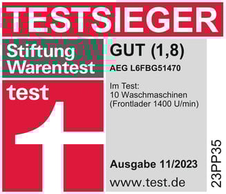 Das Magazin „test“ der „Stiftung Warentest“ testet das Modell AEG L6FBG51470 im Vergleich mit insgesamt zehn Waschmaschinen. Das Gerät wäscht „gut“: U. a. überzeugen die „sehr gute“ Sauberkeit der Wäsche und die hohe Schleuderleistung. Die Maschine meistert die Dauerprüfung „sehr gut“. Sie ist einfach zu handhaben. Außerdem punktet der niedrige Strom- und Wasserverbrauch. Mit dem Gesamtergebnis „GUT (1,8)“ ist das Modell der „TESTSIEGER“.