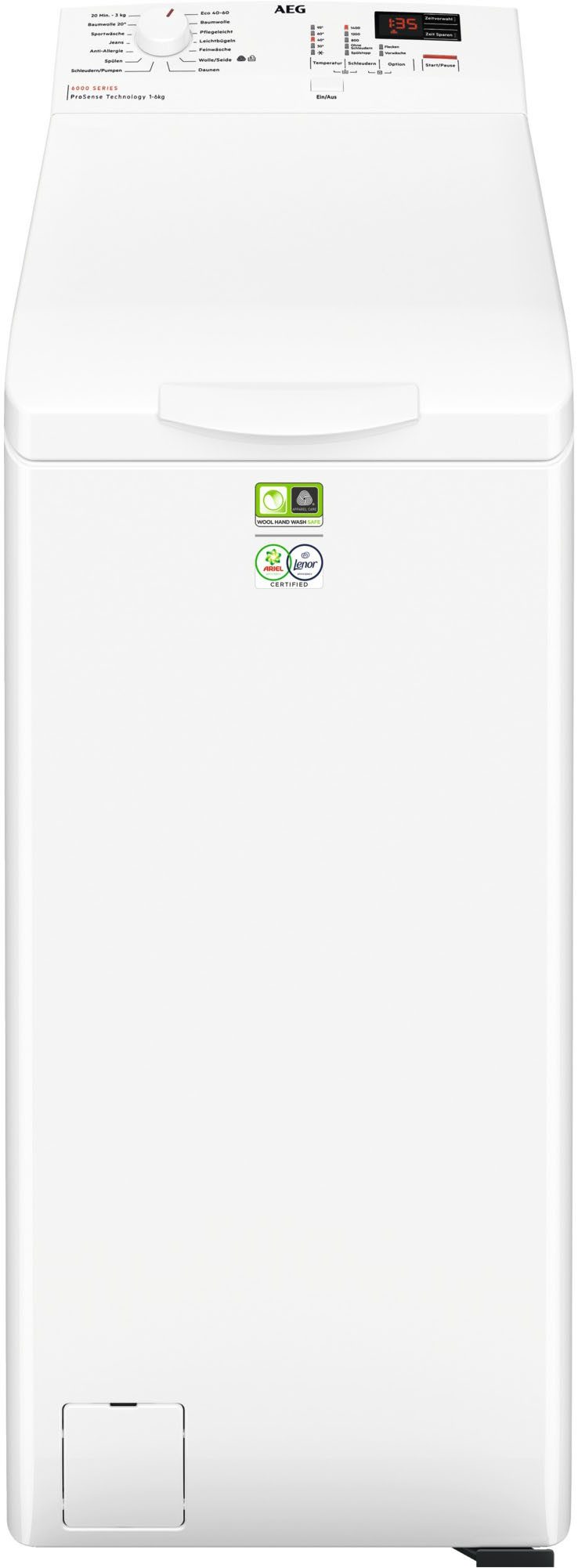 Die LTR6A41460 ist eine Toplader-Waschmaschine von AEG. Ausgezeichnet mit der Energieeffizienzklasse A (Skala: A bis G) fällt der Energiebedarf dieser Toplader-Waschmaschine äußerst gering aus. Mit 6 kg Fassungsvermögen eignet sich der Toplader vor allem für 2- bis 3-Personenhaushalte. Der eingebaute Invertermotor sorgt für eine leise und langlebige Arbeitsweise. Zusätzlich hält die LTR6A41460 Toplader-Waschmaschine folgende Top-Features bereit: Nachlegefunktion, Startzeitvorwahl und softOpening. Über Sensoren erkennt die Mengenautomatik, wie viel sich in der Trommel befindet und passt darauf hin automatisch die Wassermenge und den Energieverbrauch an. Mit der praktischen Nachlegefunktion wird die Maschine während des Programms einfach angehalten und vergessene Wäscheteile können noch hinzugefügt werden. Mit dem integrierten Wasserschutzsystem "Aqua Control System mit Alarm" sichert die LTR6A41460 Toplader-Waschmaschine Haushalte vor teuren Wasserschäden. Bei Maßen von 39,7 cm x 90,3 cm x 59,9 cm (BxHxT) vereint die Toplader-Waschmaschine Form und Funktion auf attraktive Weise.