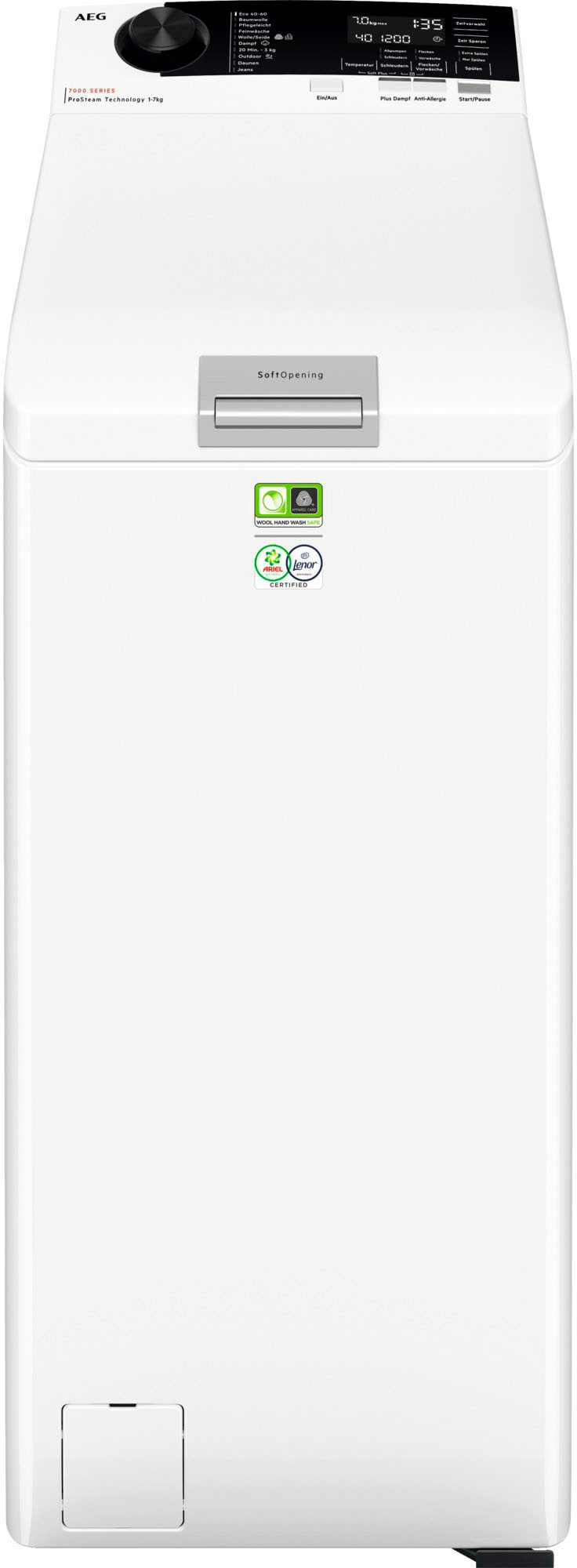 Die Toplader-Waschmaschine LTR7A37STL von AEG glänzt durch eine überzeugende Ausstattung. Die Energieeffizienzklasse A (Skala: A bis G) zeichnet diese Toplader-Waschmaschine als besonders sparsames Modell aus. Die Kapazitätsanforderungen von 2- bis 3-Personenhaushalten stellen mit einem 7 kg Fassungsvermögen kein Problem dar. Folgende Top-Features zeichnen die LTR7A37STL Toplader-Waschmaschine aus: Dampffunktion und softOpening. Das ProSense ist intelligent und praktisch. Es erkennt über Sensoren, wie viel sich in der Trommel befindet und passt die Dauer des Waschgangs und den Energieverbrauch daraufhin automatisch an. Mit einer Размер von 40 cm x 90 cm x 60 cm (BxHxT) macht die Toplader-Waschmaschine eine gute Figur.