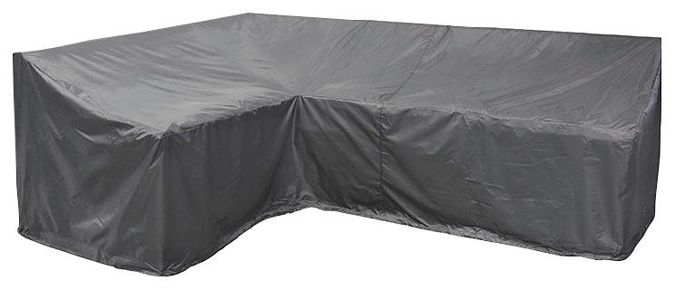 Eck-Lounge-Hülle von AeroCover. Atmungsaktive Lounge-Set-Hülle für L-förmige Loungesets mit hoher Rückenlehne 270x210x85xH 65/90 cm mit 90° Ecke. Aus sitzender Perspektive ist die linke Seite (270 cm) länger als die rechte (210 cm). Das atmungsaktive AeroCover-Gewebe ist wasserbeständig und reduziert die Kondensbildung, wodurch der Bildung von Schimmel vorgebeugt wird. AeroCover Schutzhüllen verlängern die Lebensdauer Ihrer Gartenmöbel. AeroCovers sind aus leichtem Ripstop Polyester mit einer integrierten, atmungsaktiven Membran hergestellt. Dank des dünnen Gewebes sind diese Hüllen besonders handlich in der Anwendung. Bei Nichtgebrauch sind sie platzsparend aufzubewahren und nehmen, auch dank der integrierten Aufbewahrungstasche, sehr wenig Platz ein. Die Hülle ist mit einem Zugband mit zwei Stoppern ausgestattet, so dass eine optimale Befestigung sichergestellt ist. Das AeroCover-Gewebe ist 100% wasserdicht, die Nähte sind spritzwasserfest.