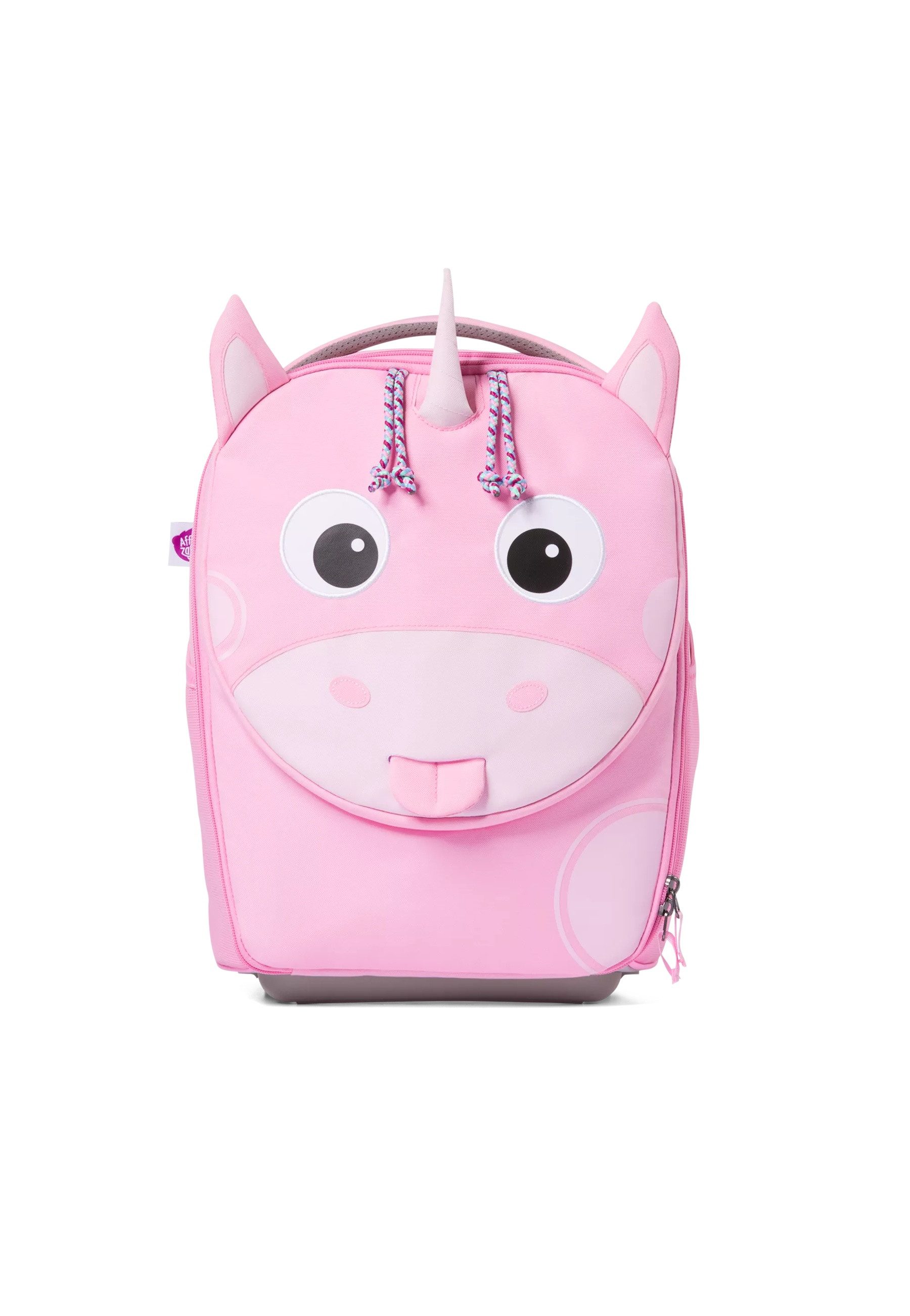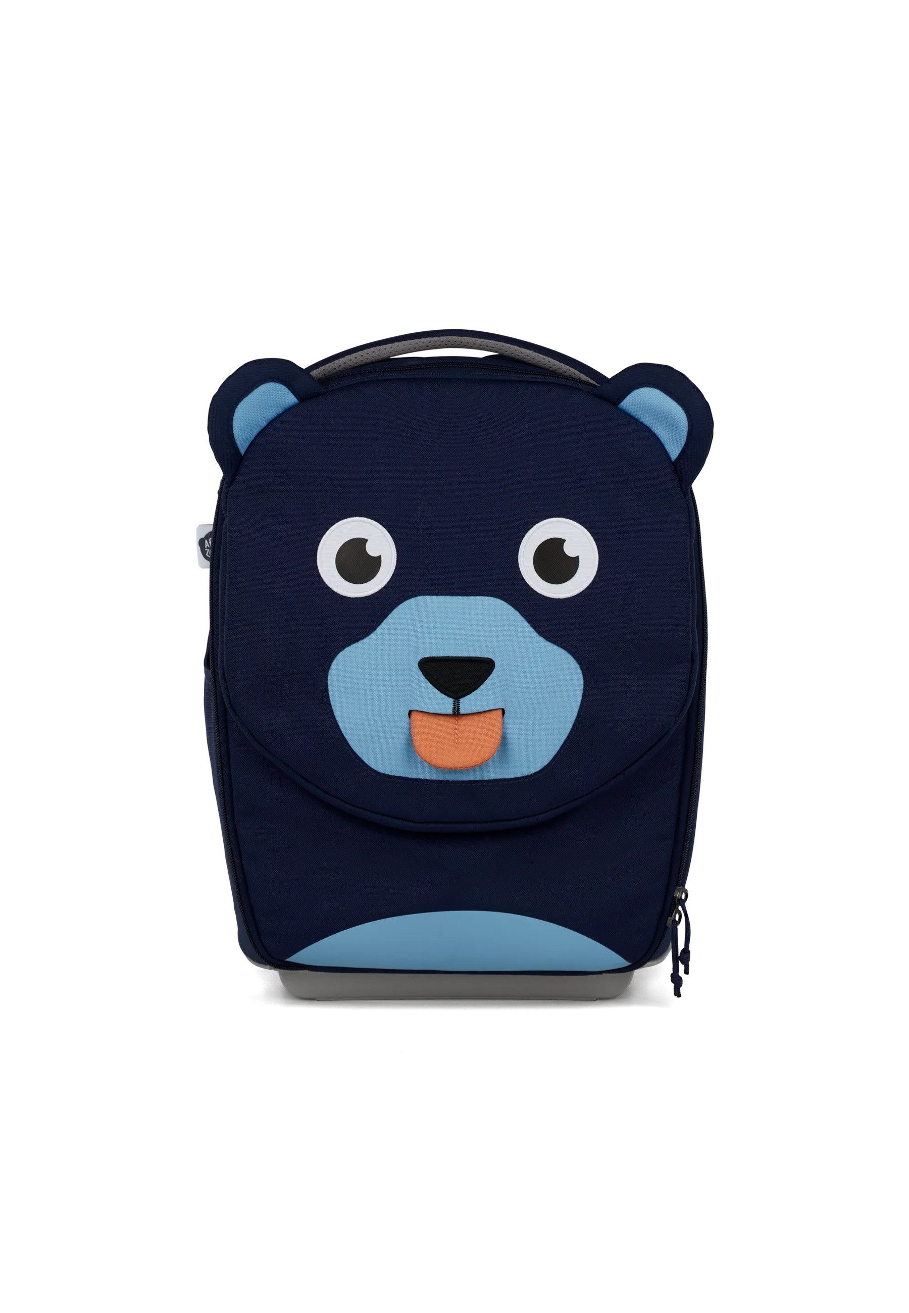 Praktischer Kinderkoffer von Affenzahn in Handgepäckgröße mit niedlichen Tiermotiven herausziehbarer Zunge und gestickten Details Der Tragegurt ermöglicht es auch den Eltern den Koffer bequem zu tragen Dank der beiden leicht manövrierbaren Rollen und der 3 stufigen Teleskopstange folgt der Handgepäckkoffer mühelos auf jeder Reise Im Inneren des Kinderkoffers befindet sich ein großes Hauptfach sowie ein Mesh Netzfach das sich zum Beispiel zum Verstauen von Schmutzwäsche eignet Die seitlichen Mesh Taschen bieten Platz für Wasserflaschen und andere kleine Gegenstände Wasser und schmutzabweisend Pflegehinweise nicht waschen nicht bleichen nicht im Trockner trocknen nicht bügeln nicht chemisch reinigen.
