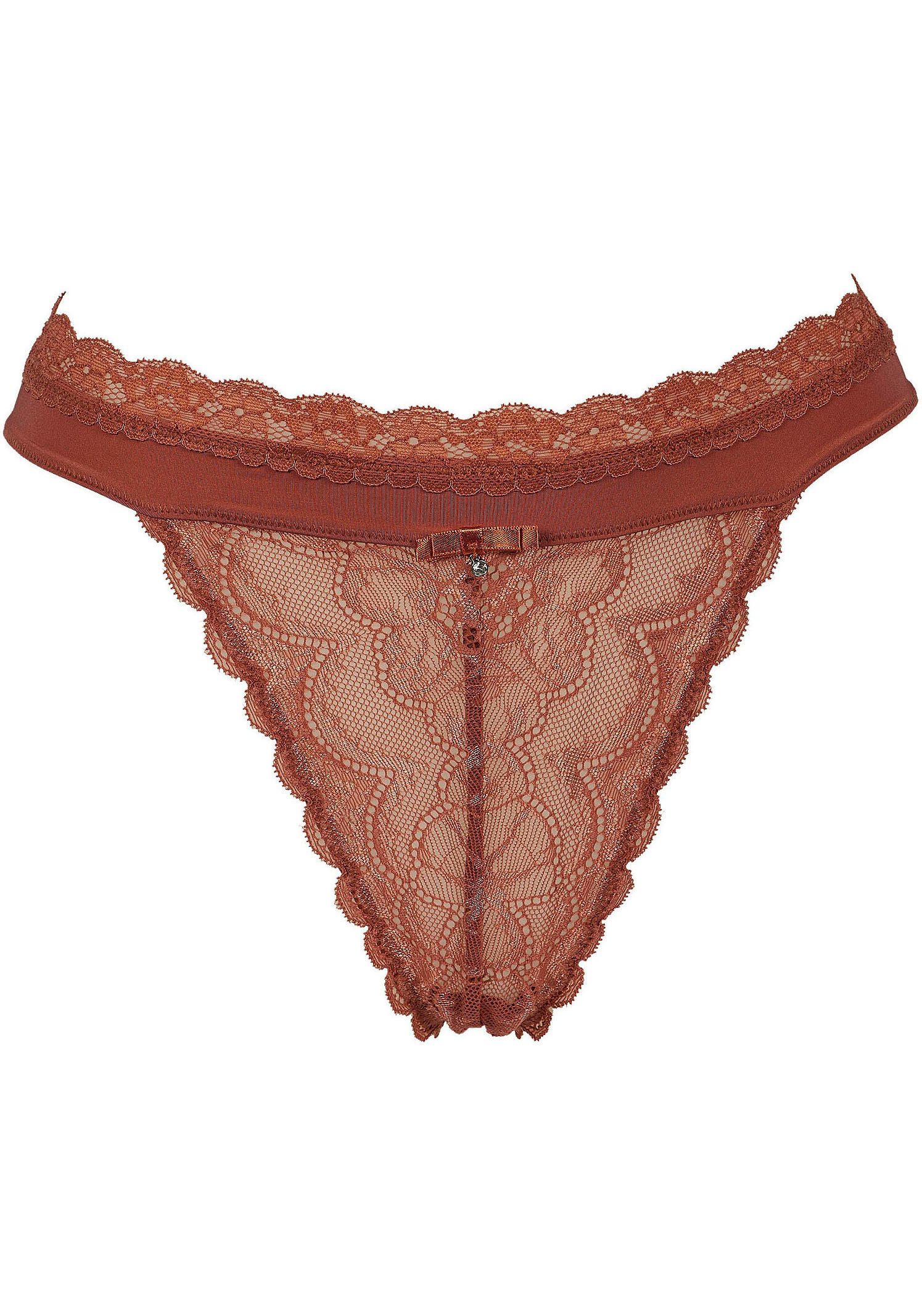 Dieser String aus der Serie Mace von After Eden ist im selben Maße sportlich wie stilvoll. Die Unterhose hat eine verspielte Spitze am Schlussstück der Beinpartie und ist hoch ausgeschnitten. Der Bund hat eine Spitze. Die Schleife und die Spitze setzen einen besonderen Akzent.