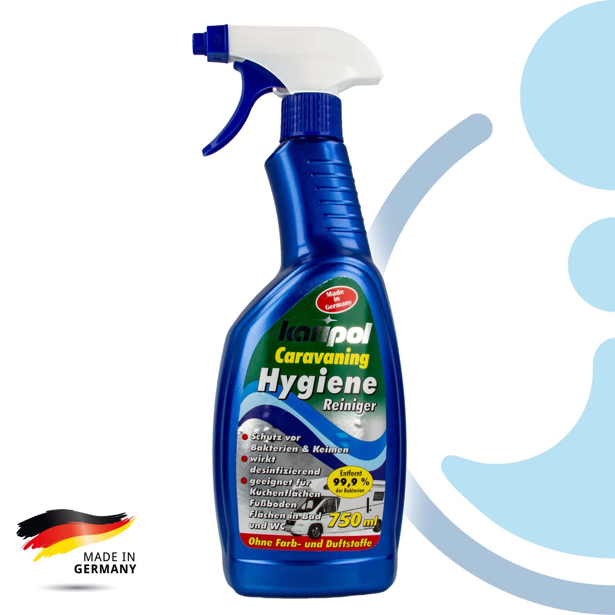 Ist für die Hygiene und Sicherheit im Caravan. Der Reiniger desinfiziert kleine Flächen und Inventar in Bad, WC und Küche mit frischem Duft. Er beugt unter anderem Durchfallkrankheiten und grippalen Infekten vor und schützt vor Ansteckungen.
