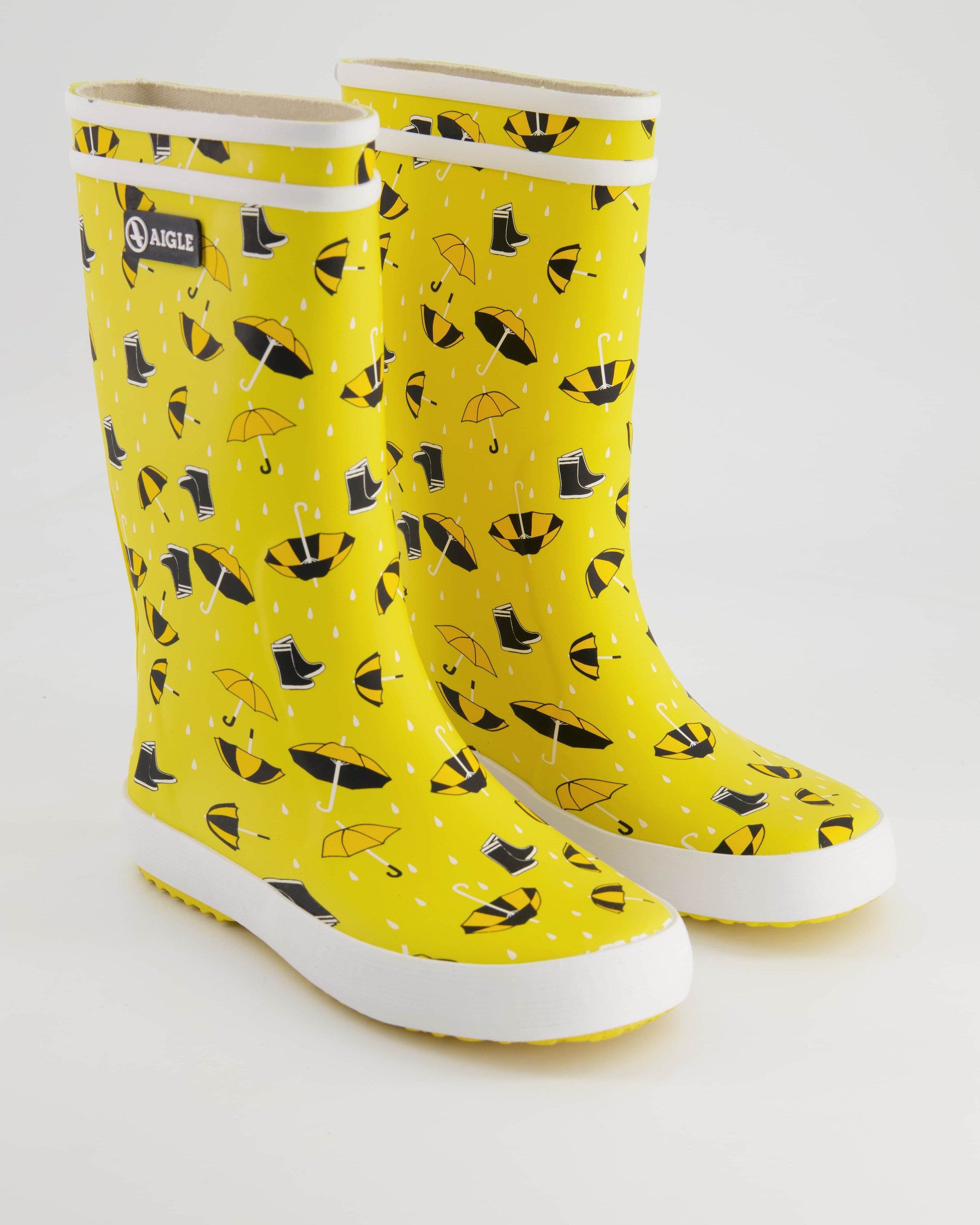 Die Aigle Lolly Pop Theme Gummistiefel sind zuverlässige Begleiter wenn es um den Schutz vor Regen, Nässe und Schmutz geht. Die Kinderschuhe haben einen High-Cut-Schnitt und ragen daher recht deutlich über den Knöchel des Trägers hinaus. Der Artikel zählt zweifelsohne zur größten unserer Produktkategorien, dem Freizeitschuhe und Casualwear Bereich. Eine gute Wahl, wenn es um die schönste Zeit des Tages geht. Die Schuhe haben keine extra Schließung, man kann einfach hineinschlüpfen. Das Obermaterial der Schuhe besteht aus Naturkautschuk und das Innenmaterial aus einem Gemisch aus Textil und synthetischen Fasern. Der Schuh enthält einen Reflektorstreifen an der Ferse.