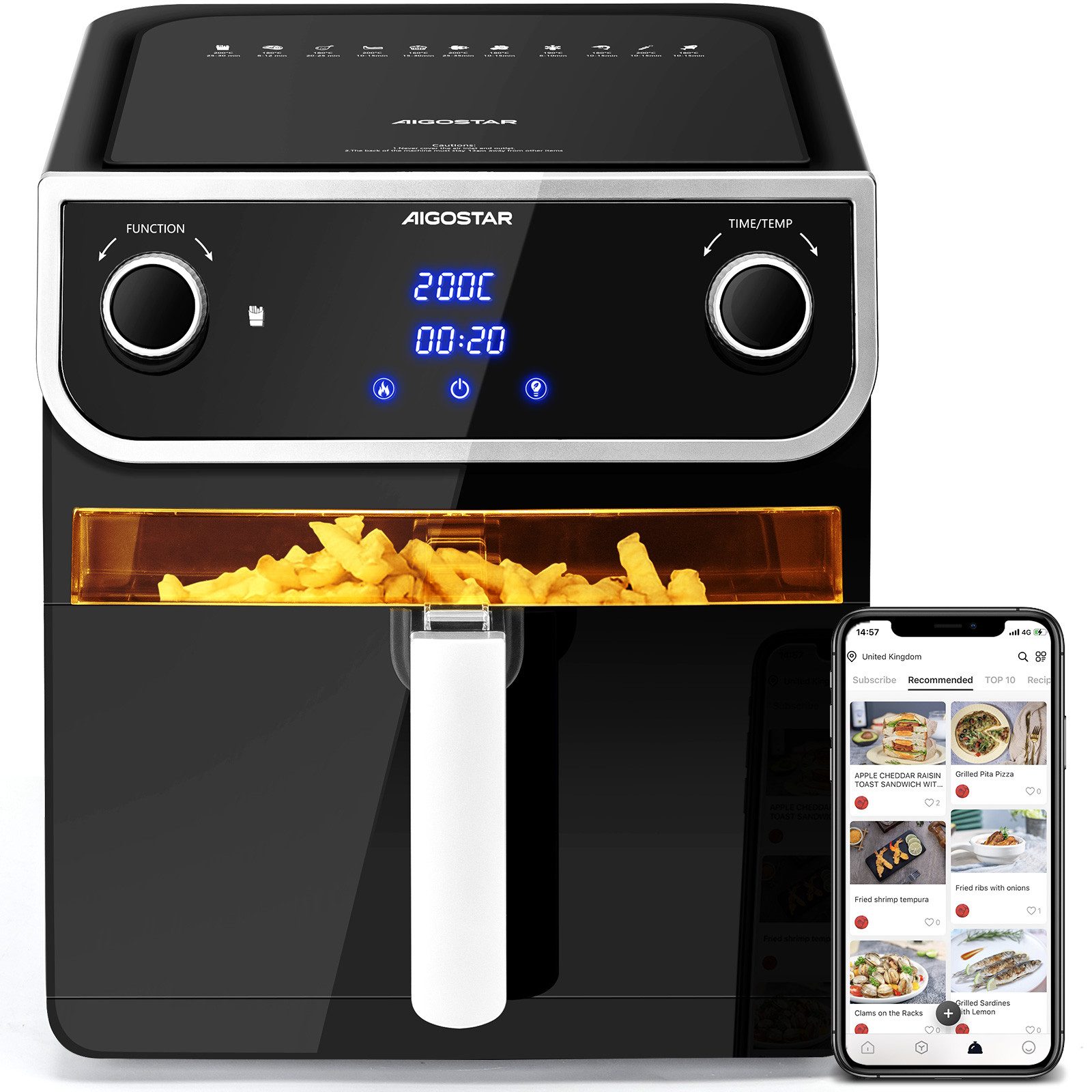 Modellbezeichnung | 1700W 8L Airfryer, 12-in-1 Kochvorgaben, Sichtfenster, Energiesparend |