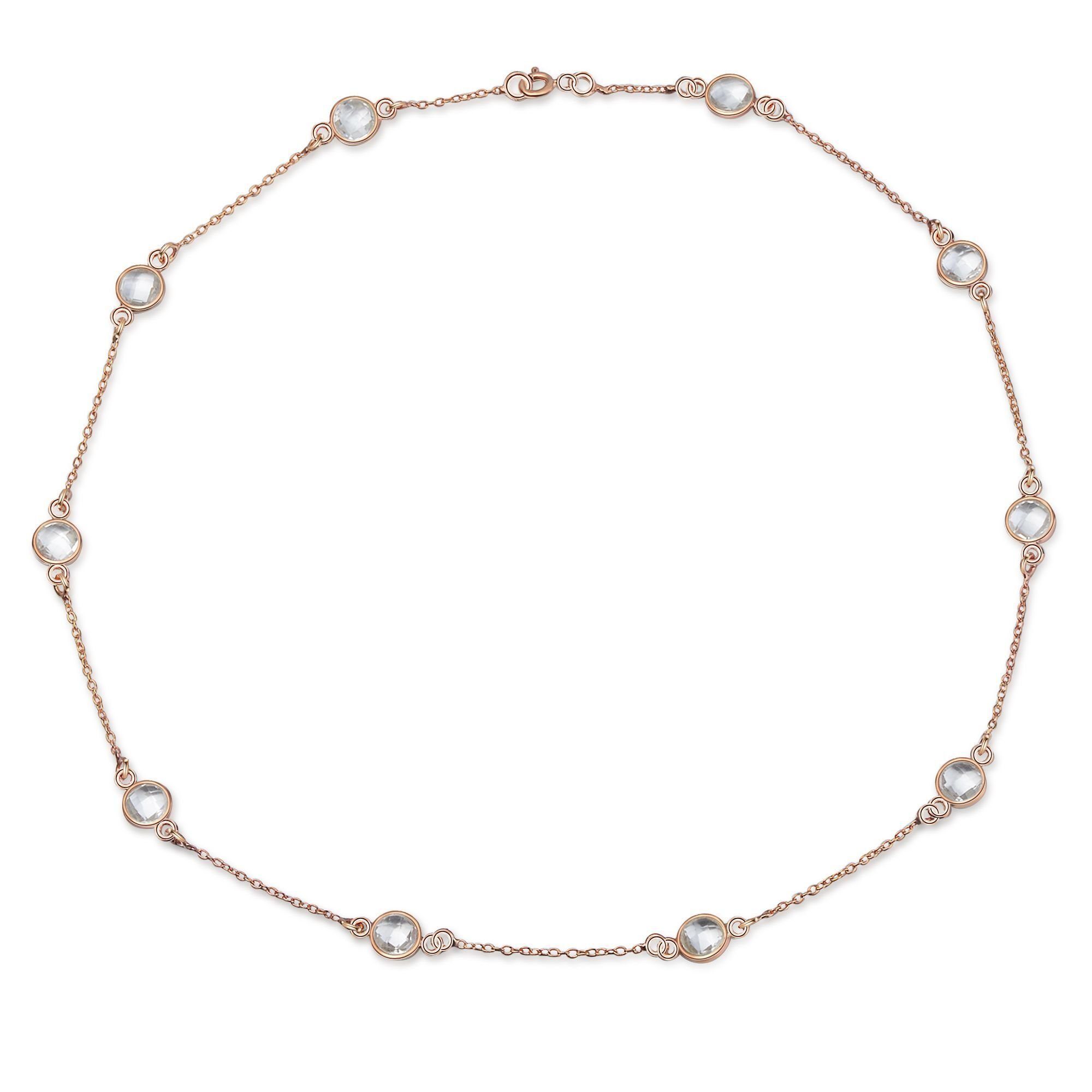 Diese hochwertige Halskette ist durch das feine Design angenehm zu tragen und eignet sich hervorragend sowohl für festliche Anlässe als auch für den Alltag sowie als Geschenk und kann alternativ doppelreihig als Armband getragen werden. Passend zur Halskette umfasst die Kollektion im gleichen Design Ohrringe mit unterschiedlichen funkelnden Edelsteinen