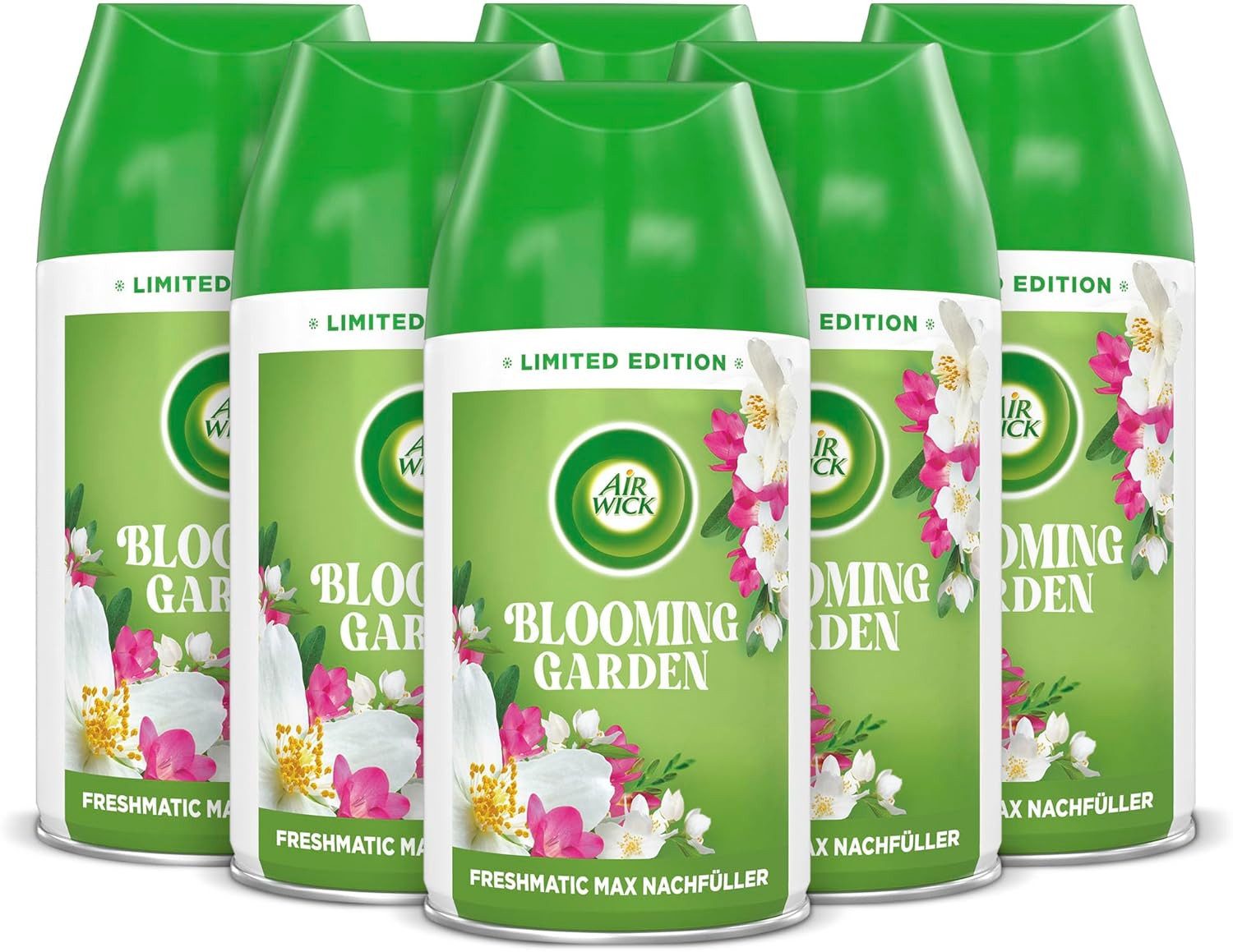 6 x 250ml Air Wick Nachfüller Raumspray für Air Wick Freshmatic Max / Duft: Blooming Garden / Mit ätherischen Ölen / Kompatibel mit den meisten handelsüblichen Geräten