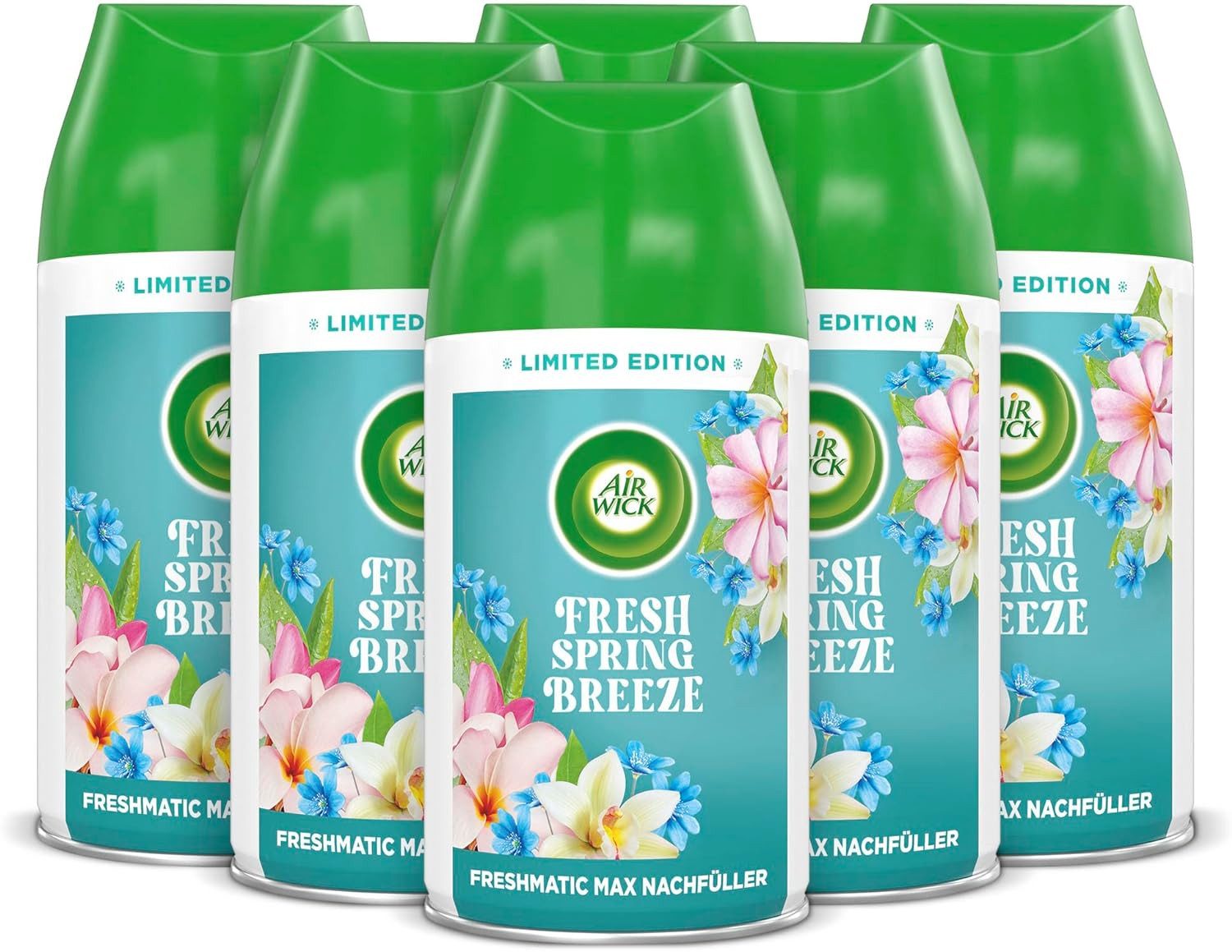 6 x 250ml Air Wick Nachfüller Raumspray für Air Wick Freshmatic Max / Duft: Fresh Spring Breeze / Mit ätherischen Ölen / Kompatibel mit den meisten handelsüblichen Geräten