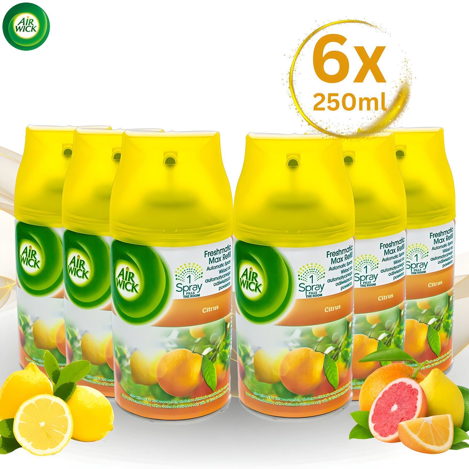 Erfrischen Sie Ihr Zuhause mit dem Air Wick Nachfüller Sparkling Citrus für Automatische Duftspender. Dieses Paket enthält 6 Nachfüllflaschen à 250ml, die mit einem belebenden Duft von spritziger Zitrusfrische Ihr Raumklima verbessern.