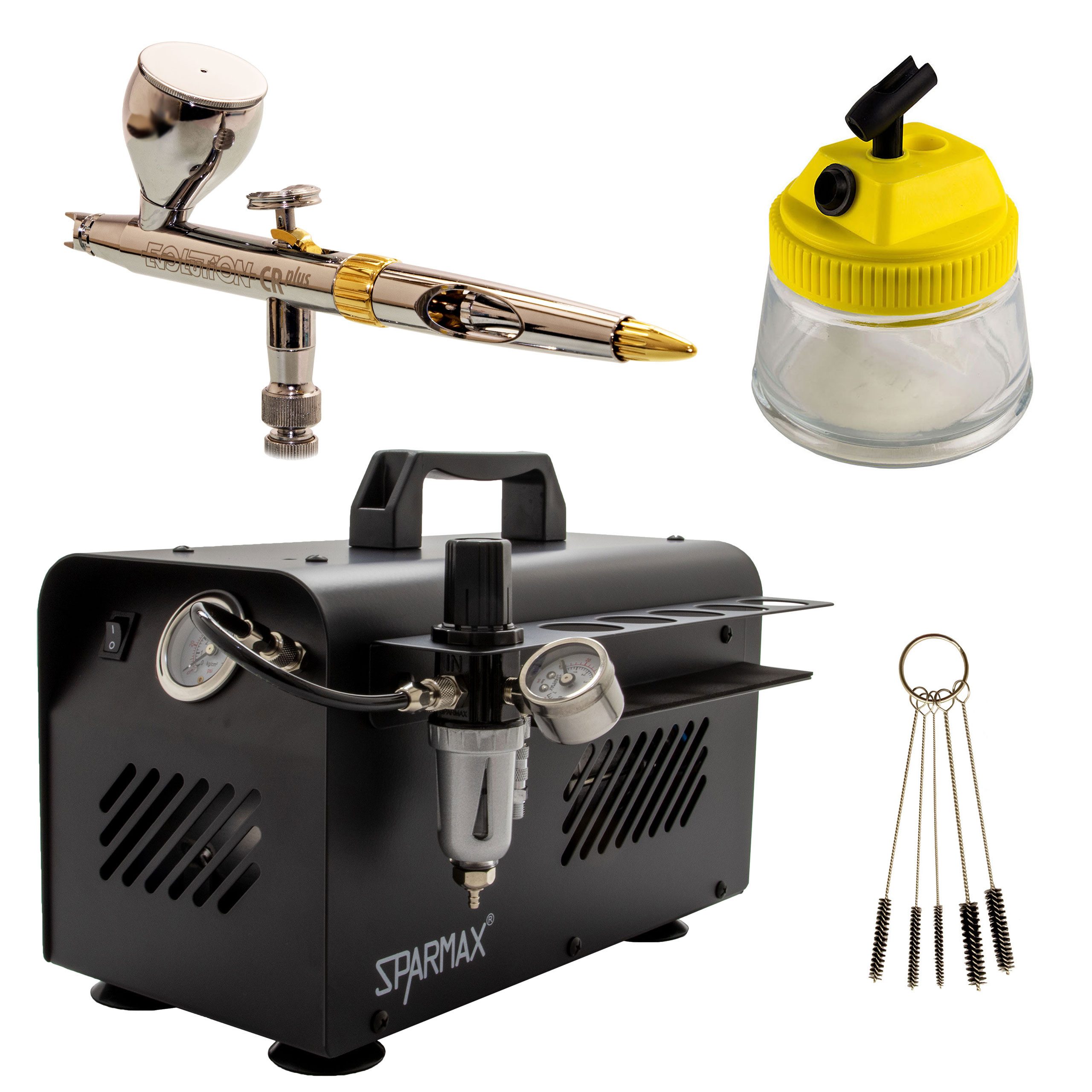 Der Kompressor Sparmax TC-501 AST ist besonders leise und hat 5 Fächer für Airbrush Farbflaschen. (Empfohlende Düsengröße 0.15 bis 0.45mm)