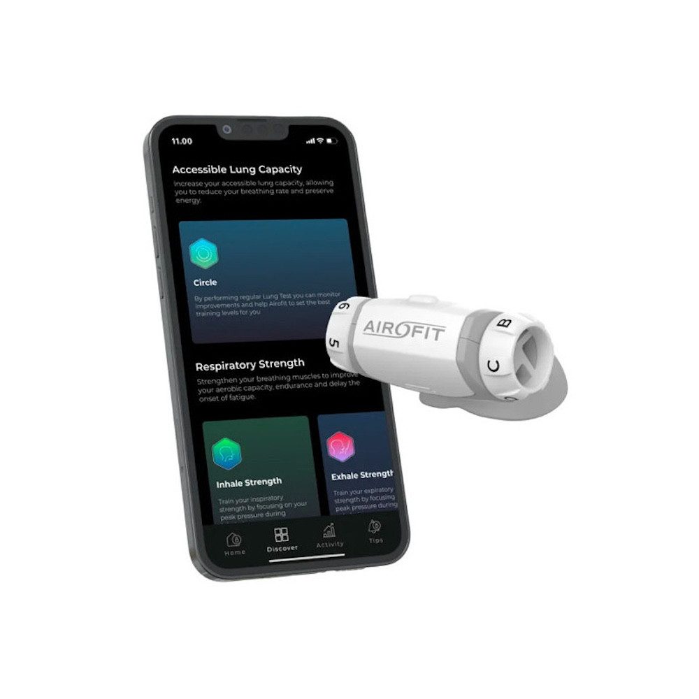 Der Airofit Atemtrainer bietet einen einstellbaren Luftstromwiderstand für Ihre Atemmuskulatur. Außerdem misst er Ihr Atemvolumen und Ihre Atemkraft und sendet die Daten an Ihr Smartphone. Airofit ist so konzipiert, dass es unabhängig von Training und anderen körperlichen Aktivitäten verwendet werden kann. Das bedeutet, dass Sie Airofit in jedem freien Moment nutzen können - vor dem Schlafengehen, bei der Arbeit, nach einer Sporteinheit oder wie es Ihnen am besten passt.