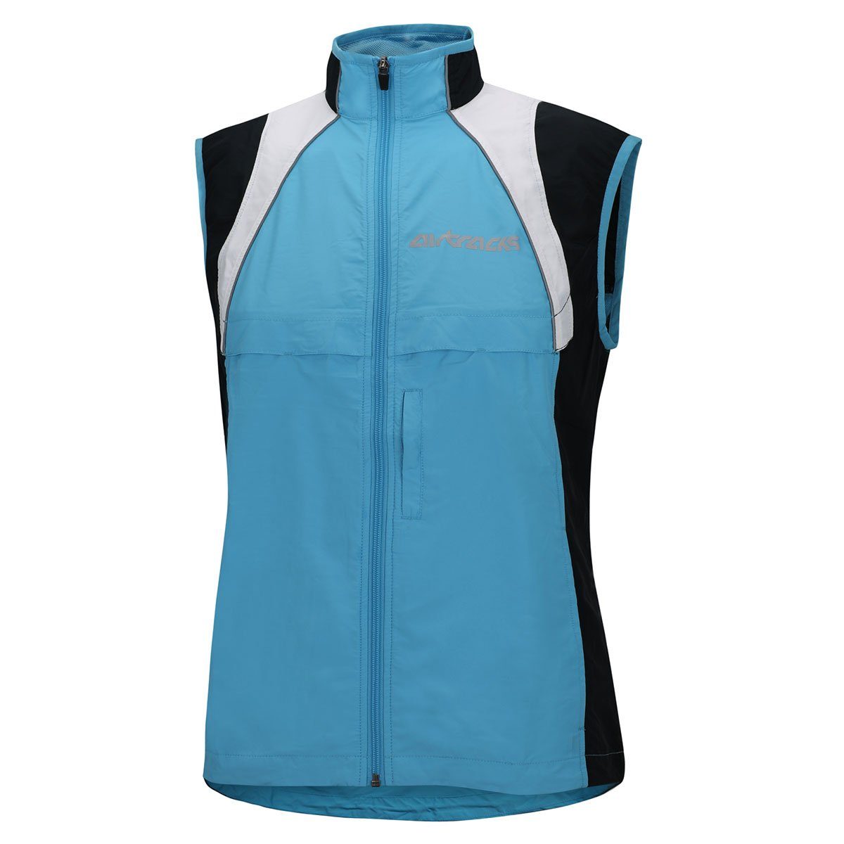 Leichte Radweste / Laufweste, atmungsaktiv, wind und wasserabweisend, geringes Gewicht. Bundabschluss mit Kordelzug und mit in die Taschen geführte Kordelstopper. kleine Reißverschlusstasche vorne und zwei Seitentaschen, hohe Tragekomfort und Haltbarkeit, Ventilation im Rückenkoller. Reflexlogo im Frontbereich, Reflektorenstreifen vorne und hinten