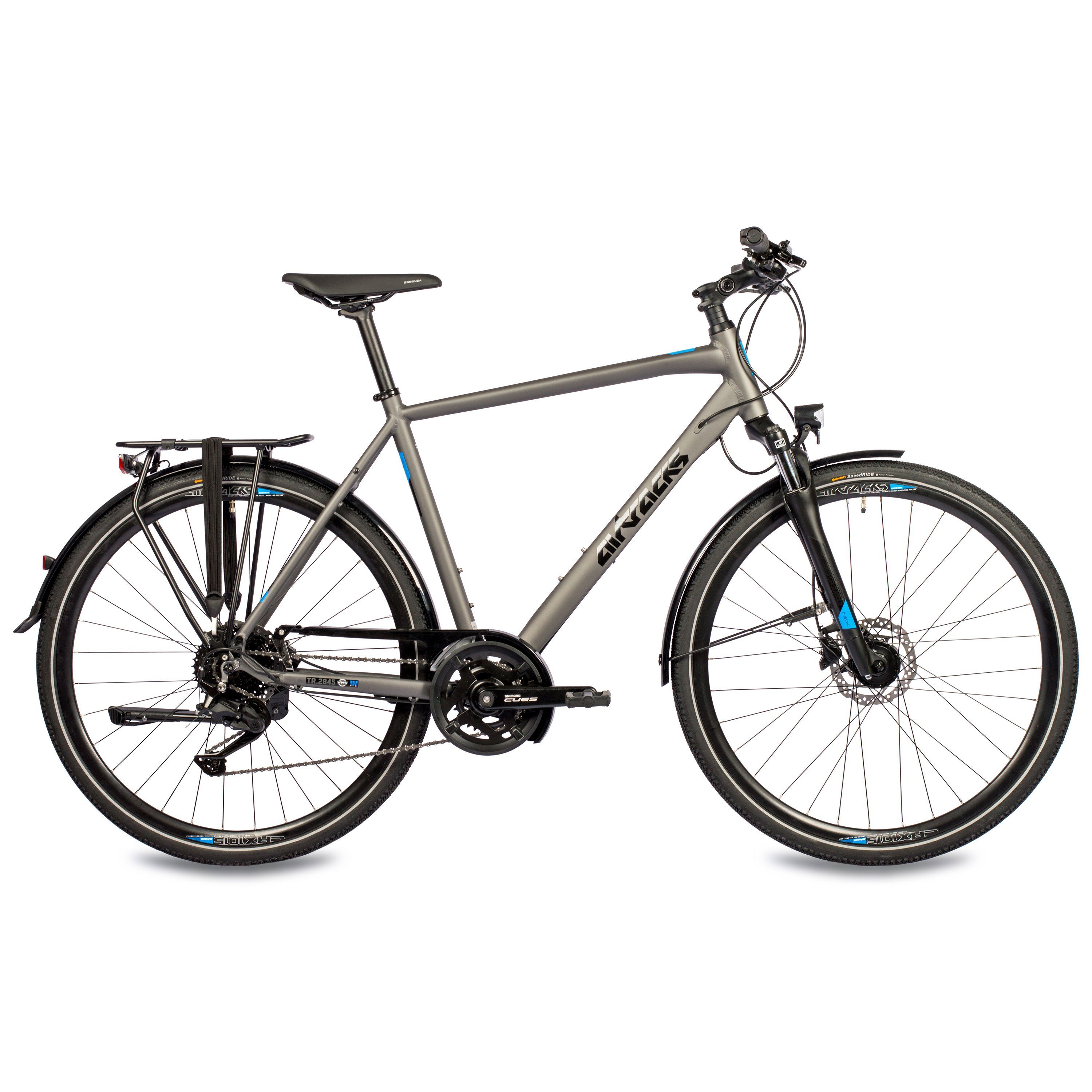 Die neue SHIMANO CUES 2-PIECE KURBELGARNITUR erhöht die Steifigkeit der Kurbelgarnitur bei geringerem Gewicht und sorgt für effiziente Übertragung der Pedalkraft und bringt mehr Spaß auf Trekkingtouren.Die leistungsstarke Lichtanlage von Herrmans vorne und Axa hinten betrieben durch den Nabendynamo Shimano Nexus sorgen dafür, dass man sieht und gesehen wird.