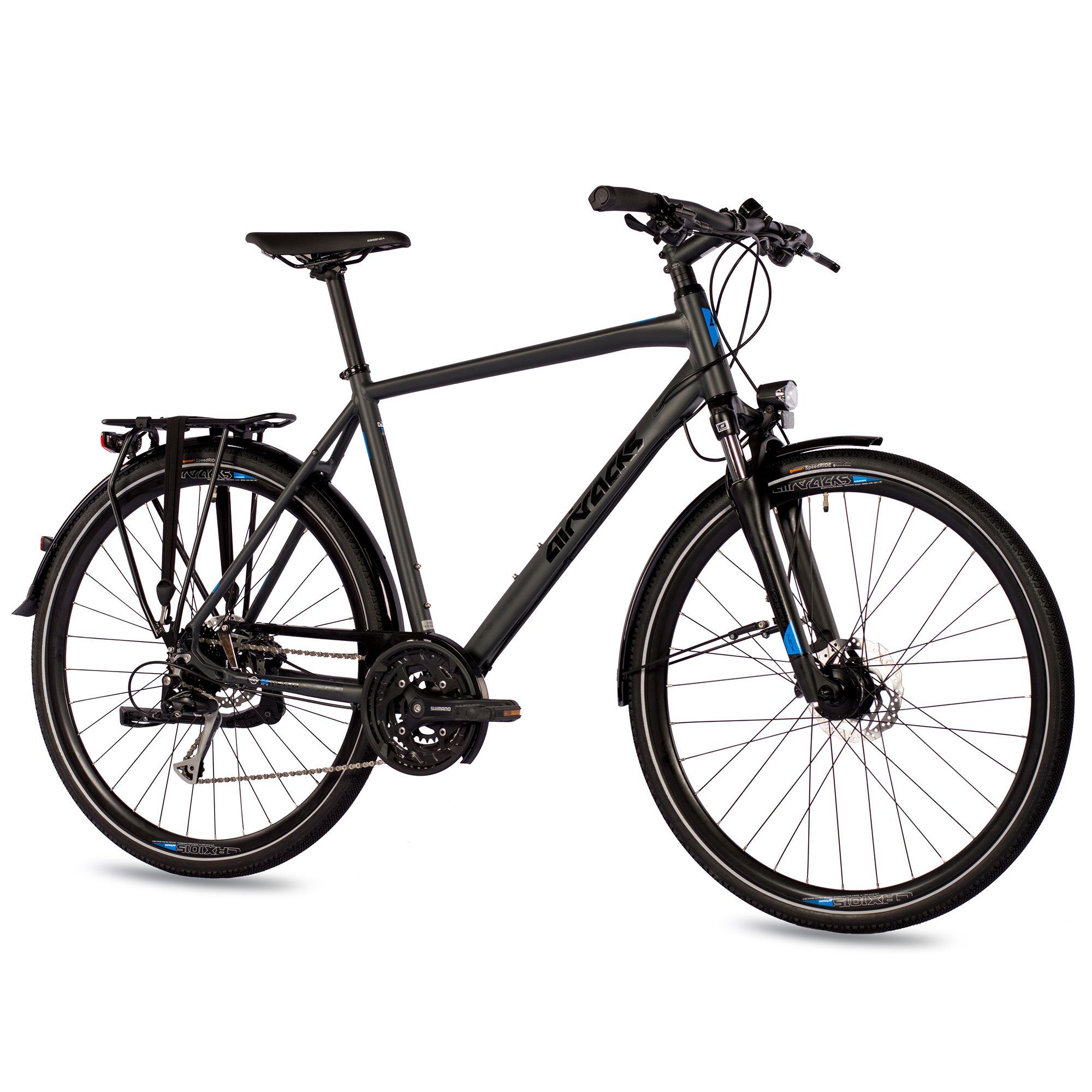 Zu der Grundaustattung eines Trekkingsrades gehört natürlich eine gute Kettenschaltung, in unserem Fall bei dem Airtracks TR.2845 die 27-Gang Shimano Alivio. Die leistungsstarke Lichtanlage von Herrmans vorne und Axa hinten betrieben durch den Nabendynamo Shimano Nexus sorgen dafür, dass man sieht und gesehen wird.
