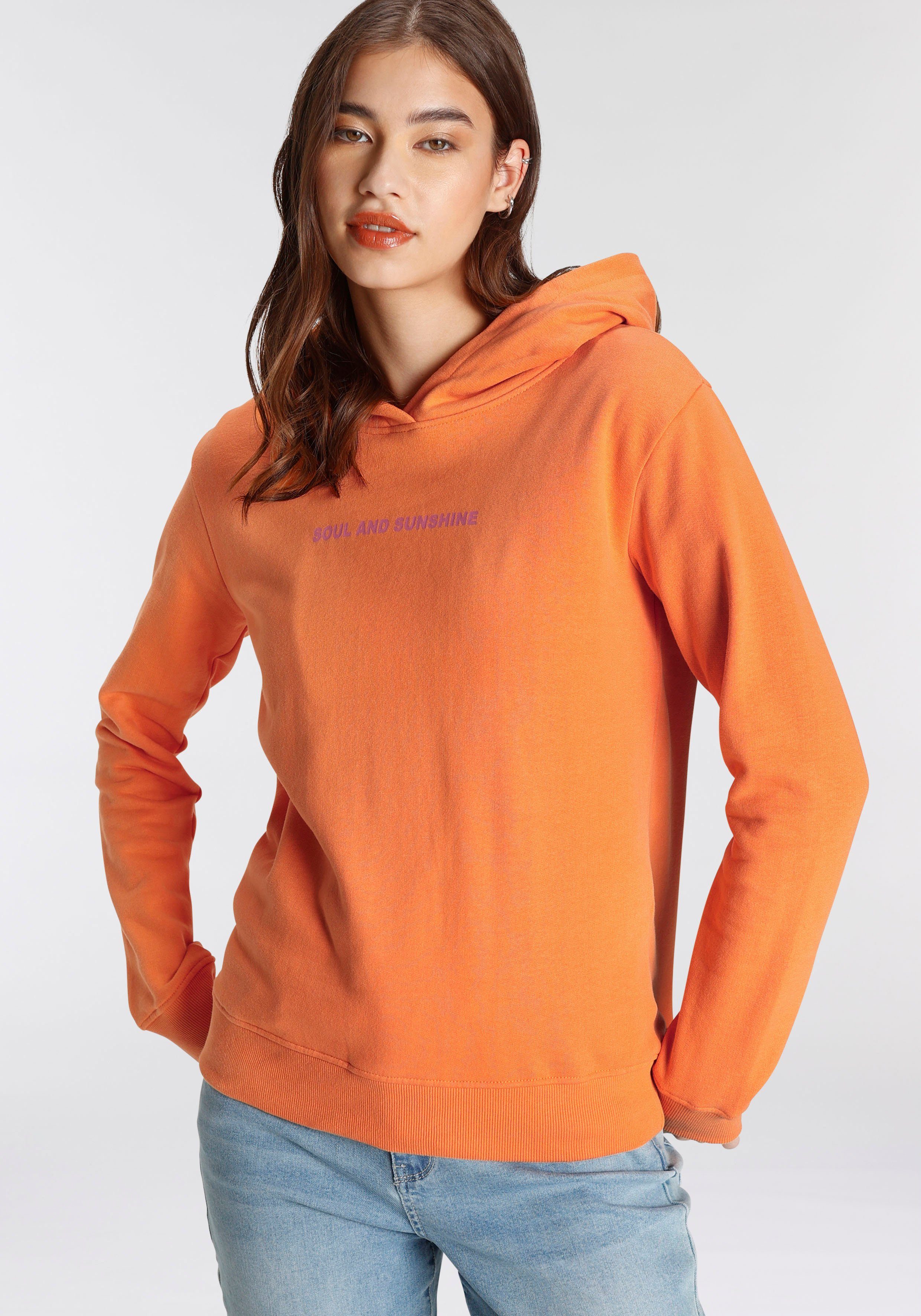 Gesucht und gefunden: Schau dir den Hoodie von AJC mal genauer an. Eine Kapuze ist bei diesem Hoodie angesetzt. Die Ärmel enden in einem angesetzten Bündchen.