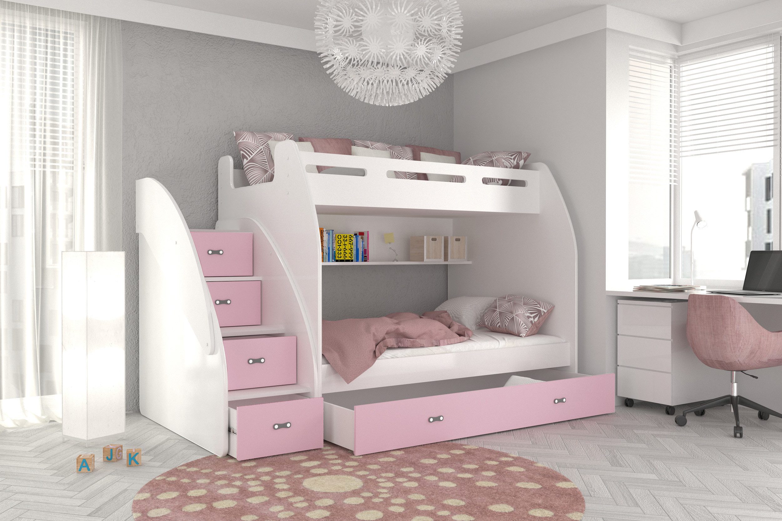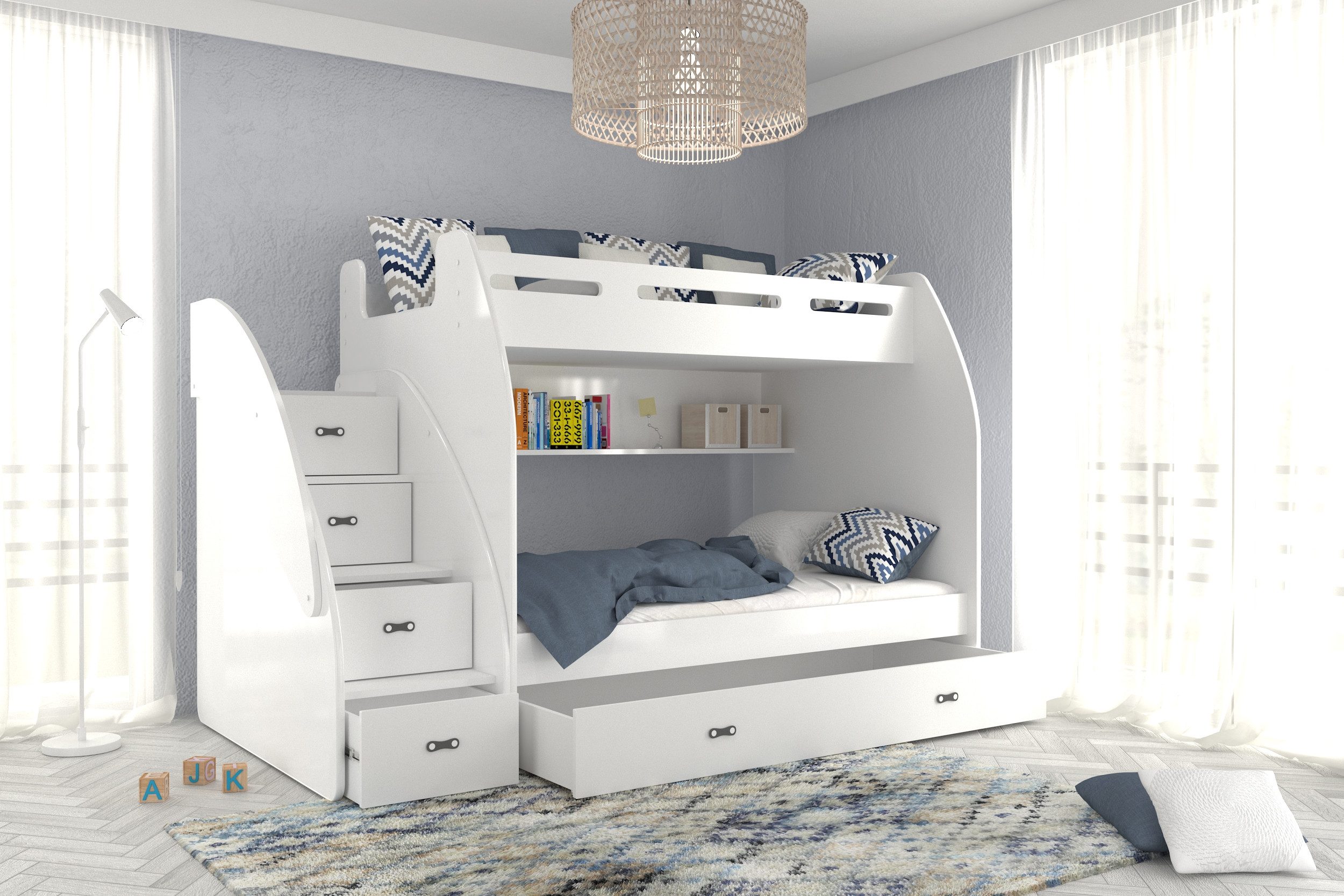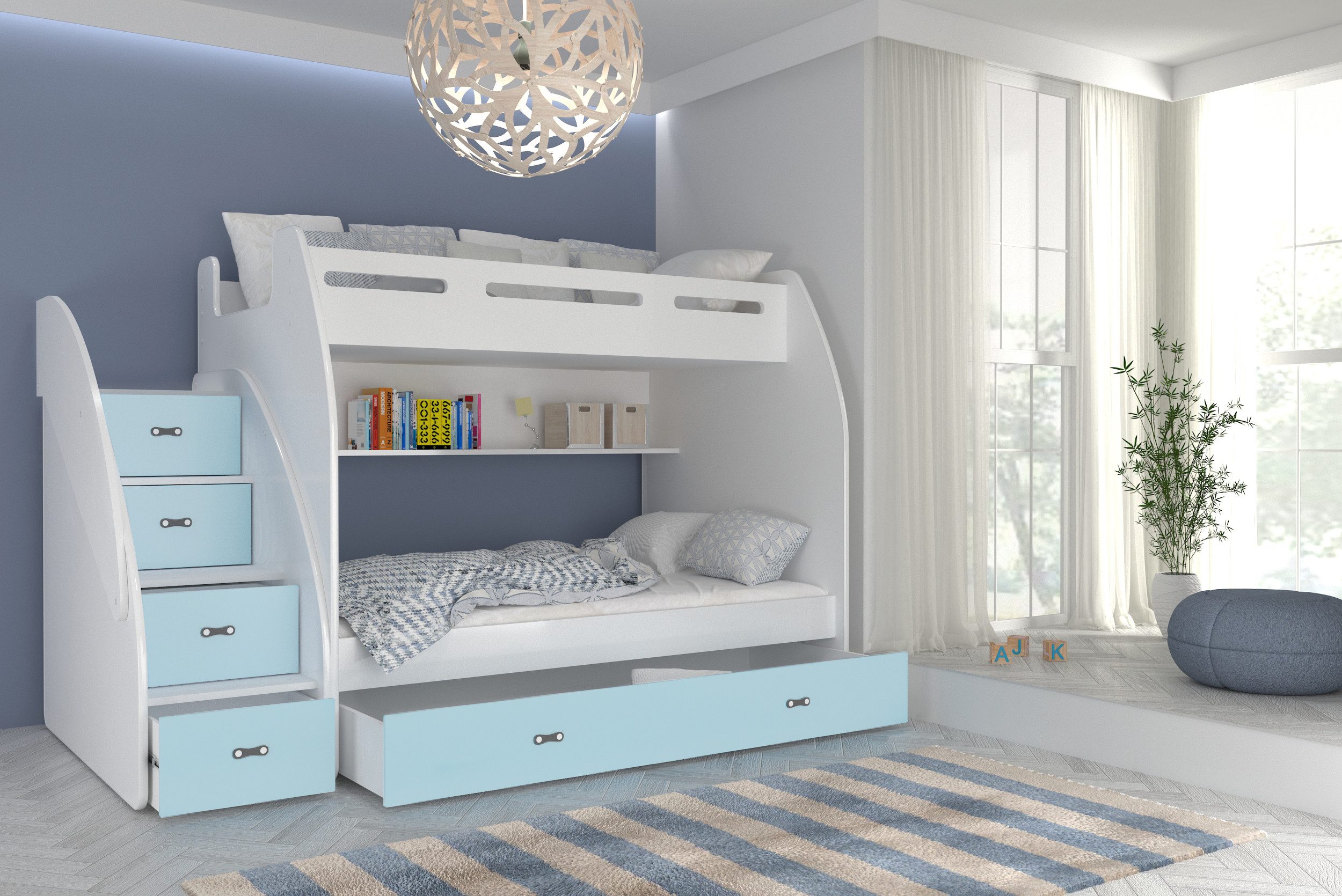 Das AJKMEBLE Hochbett ist die perfekte Lösung für unser Kinderzimmer! Mit der Kombination aus Hochbett, Treppe und Ausziehbett bietet es nicht nur einen Schlafplatz, sondern auch viel Stauraum und Flexibilität. Die Treppe kann beidseitig montiert werden, was uns die Freiheit gibt, das Bett ideal an die Gegebenheiten des Zimmers anzupassen.