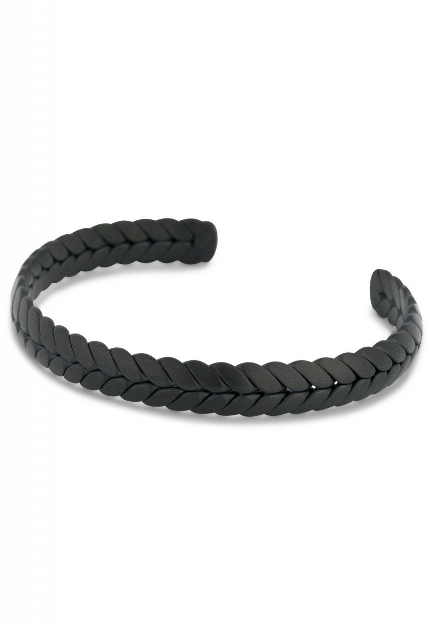 Armreif mit Lorbeerkranz-Design • One size - 57 mm. Du kannst die Размер anpassen, indem Du den Armreif leicht biegest • Metallfarbe: schwarz • Edelstahl - mattschwarz platiert