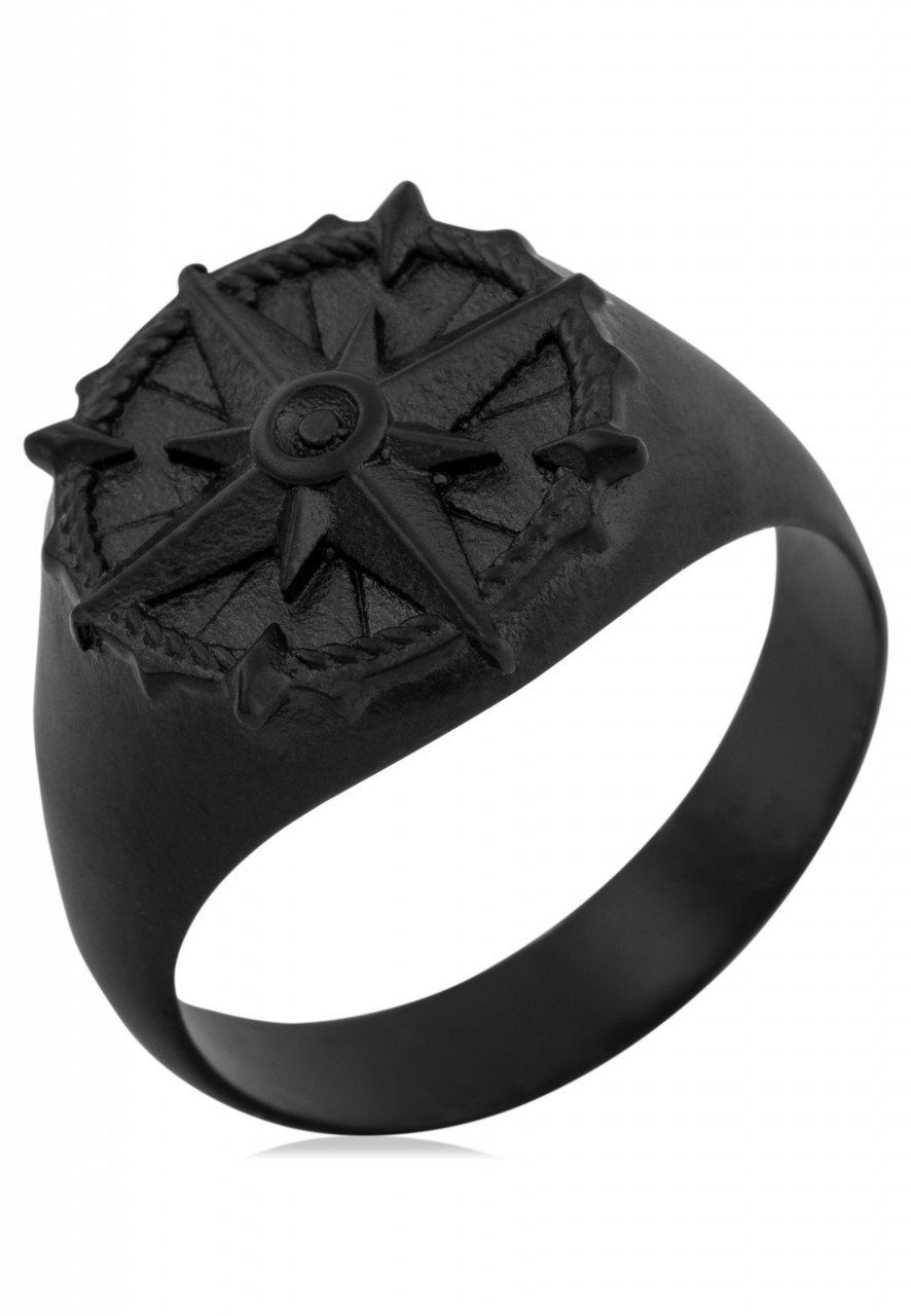 Schlanker Siegelring mit Kompass-Emblem - Edelstahl - Farbe: pvd plattiert, mattschwarz - klimaneutrale Herstellung und Versand (natureOffice.com | ID DE-077-252257)