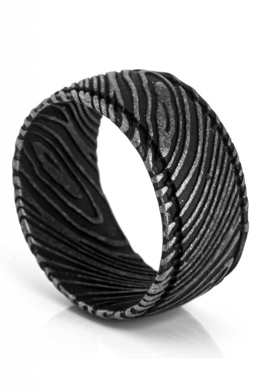 Schmaler Ring mit Damaszener Stahl Optik • Edelstahl • Farbe: Antiksilber • Klimaneutrale Produktion und Versand ( natureOffice.com | ID DE-077-252257)