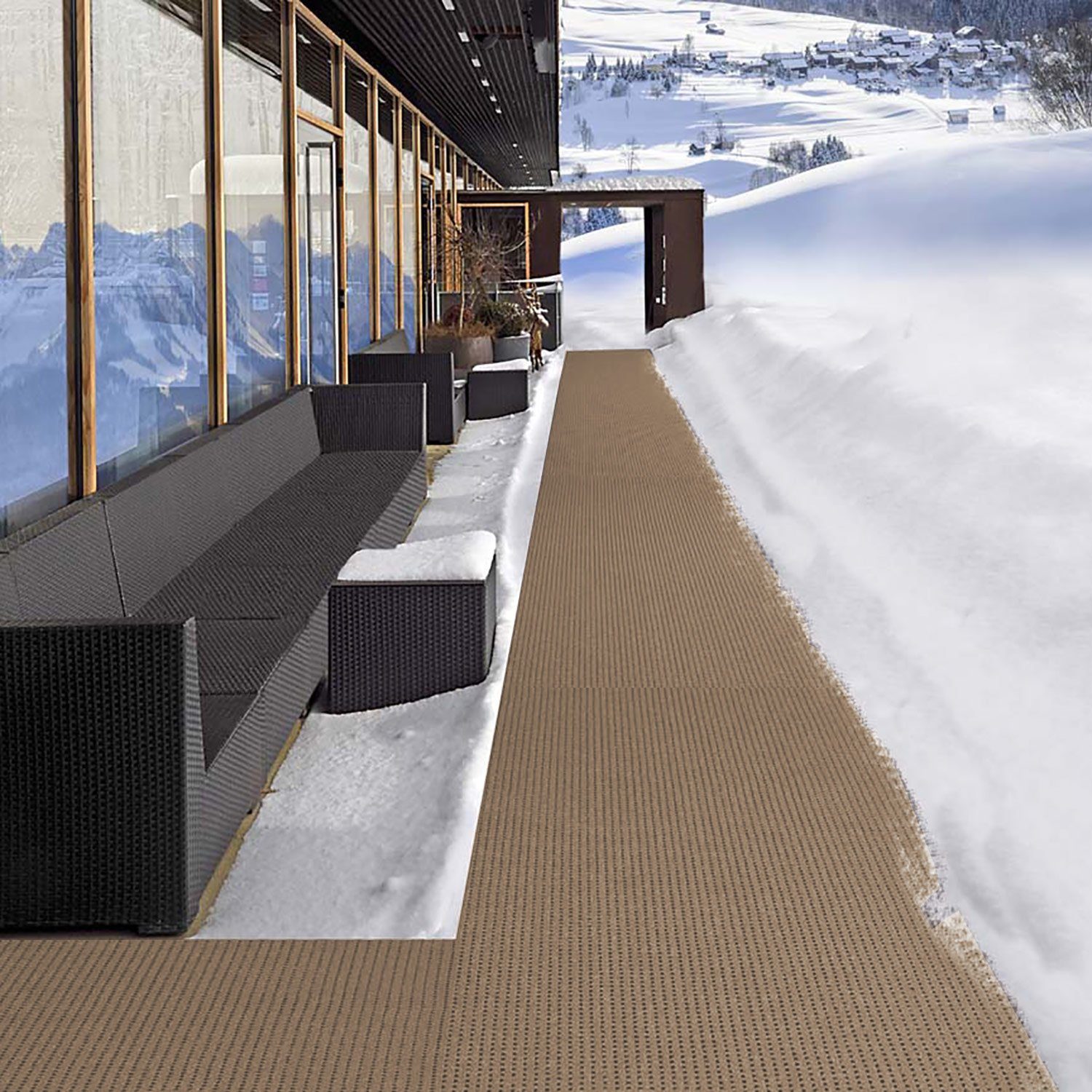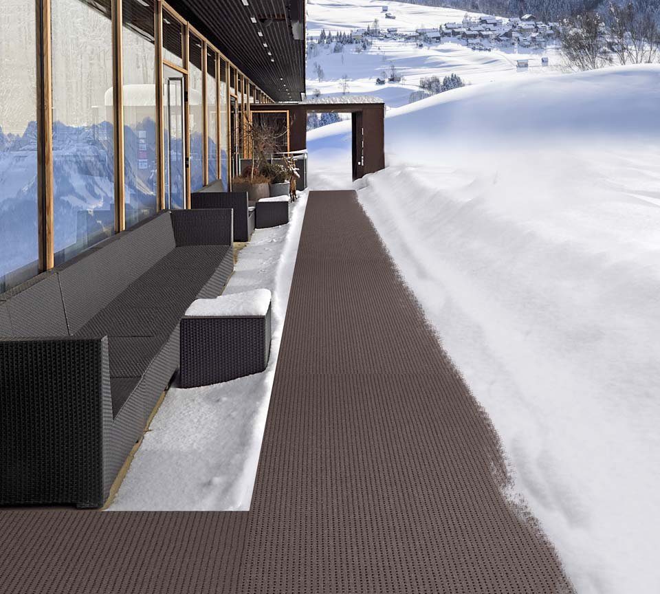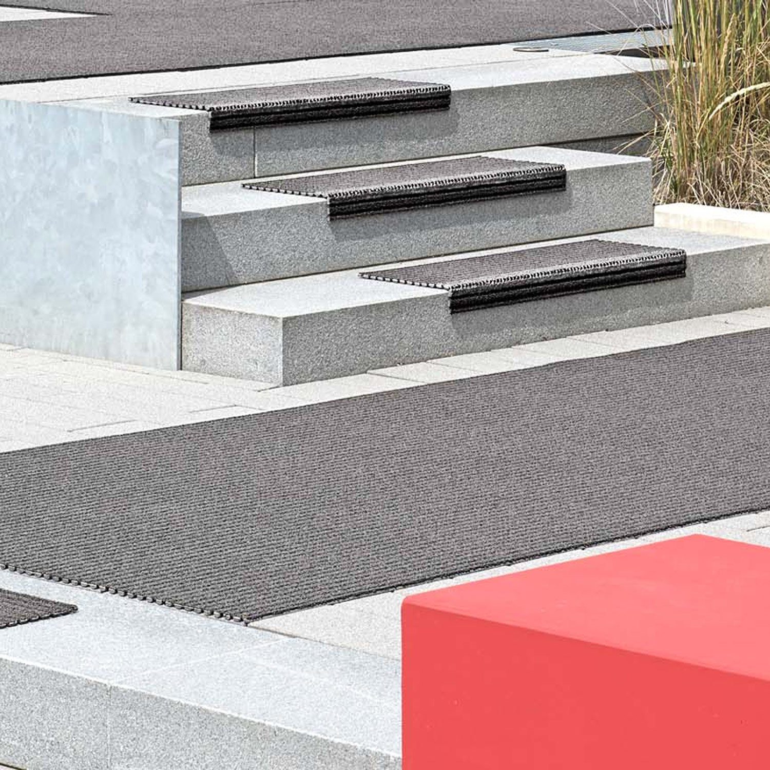 Rutschsicherer Belag für Hauseingänge, offene bzw. überdachte Laubengänge in Wohnanlagen (z. B. Seniorenheime). Als rutschfester Bodenbelag hinter Theken, in Verkaufsräumen, an Arbeitsplätzen, etc. Als Bodenbelag für Balkone, Terrassen und Loggien mit Schmutzfangwirkung.