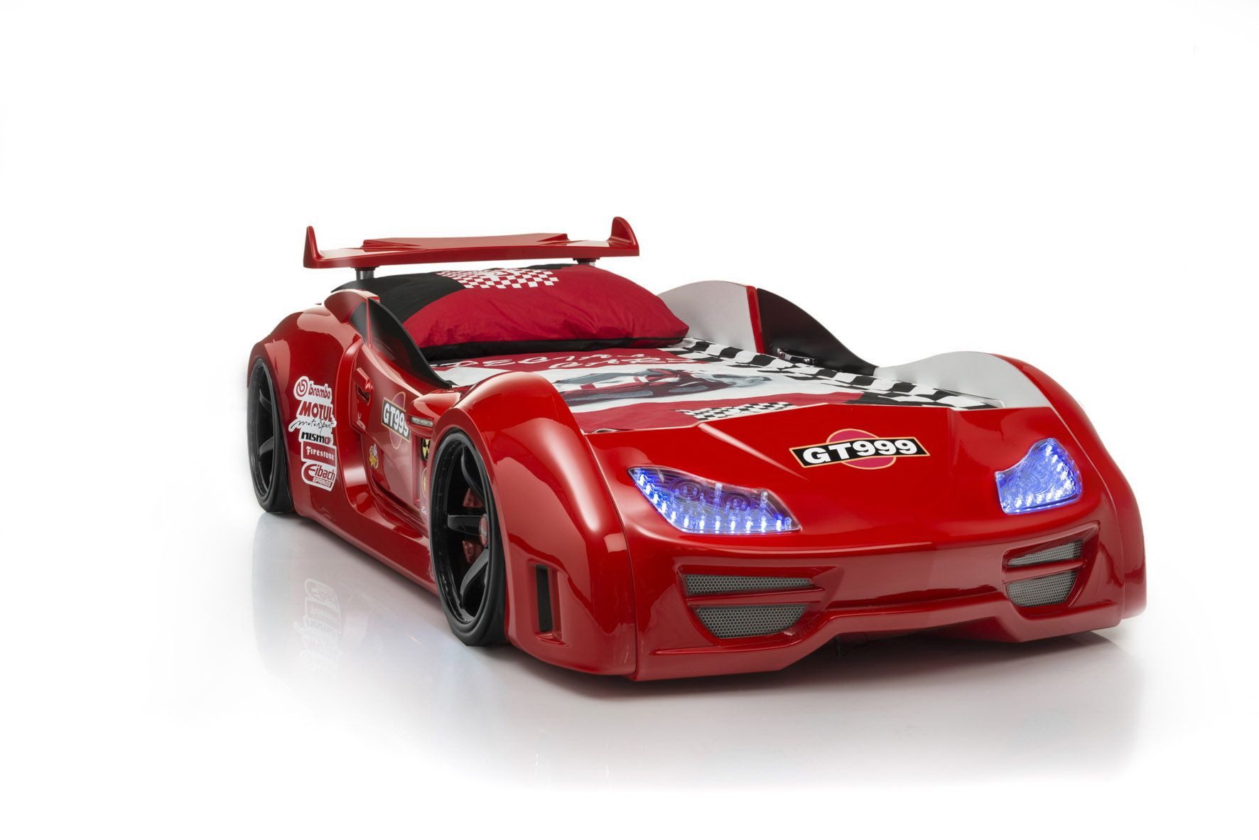 Träume groß und fahre schnell! Das Autobett GT 999 Medium ist mehr als nur ein Bett – es ist eine Rennstrecke für kleine Motorsportler. Mit realistischen Details wie LED-Scheinwerfern, Heckspoiler und einer Fernbedienung für coole Soundeffekte wird jedes Zubettgehen zum Abenteuer. Die großzügige Liegefläche von 90 x 190 cm und das robuste Design sorgen für erholsamen Schlaf und langanhaltende Freude. Verfügbar in 5 Farben.