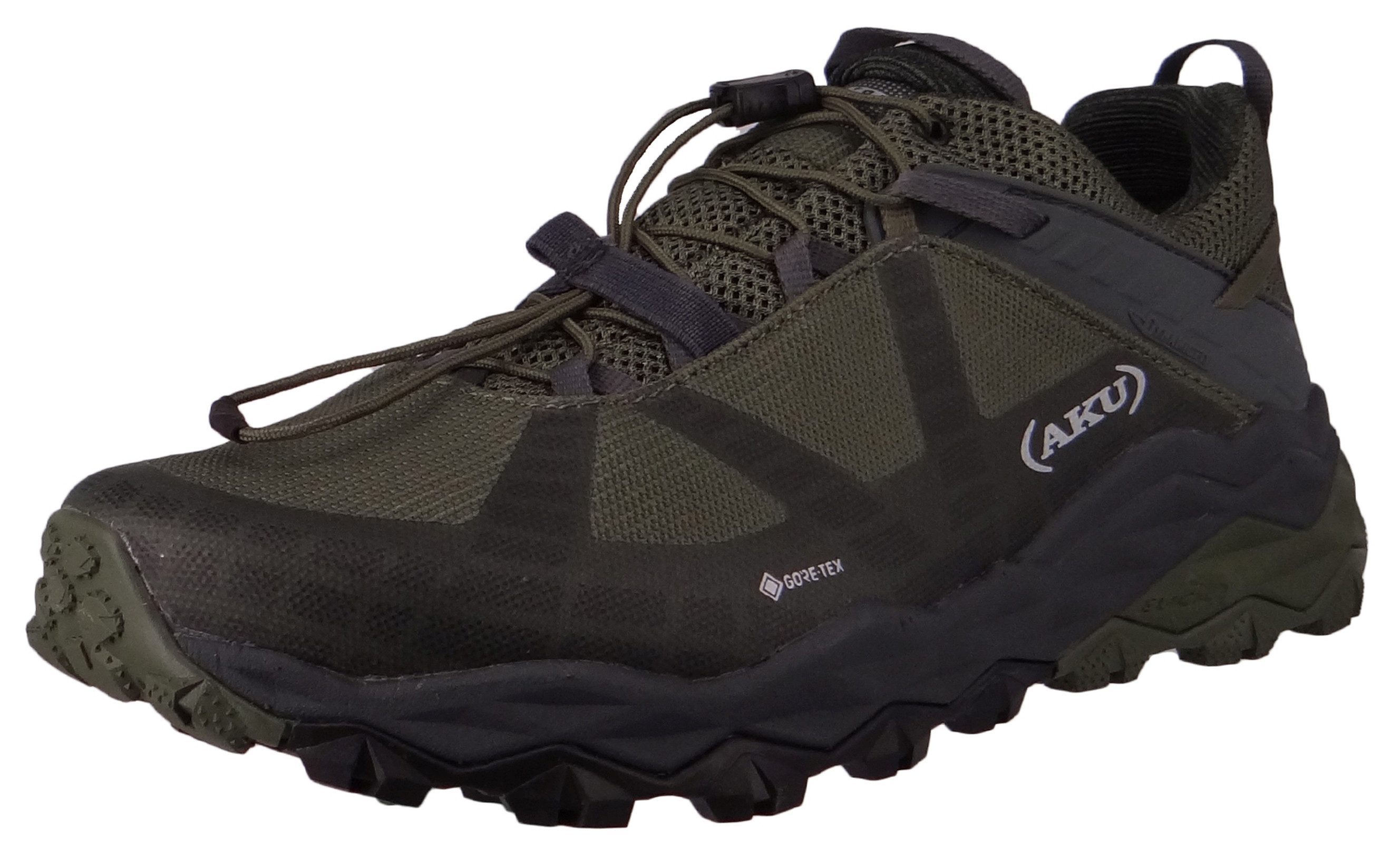 Die Halbschuhe Flyrock GTX 698 aus dem Hause AKU im sportlichen Style. Das Obermaterial Mix aus tragefreundlichem Textil und Synthetik sowie das Innenmaterial aus Textil sorgen für perfekten und komfortablen Tragekomfort zu jeder Jahres und Tageszeit. Der Schnürverschluss sorgt für den leichten Einstieg und setzt diese Schuhe auch noch stilvoll in Szene. Sie haben einen flachen Absatz und eine Laufsohle aus Gummi. Die AKU Flyrock GTX sind absolut toll mit allem kombinierbar.. Die Ortholite® Hybrid Innensohle & die High Cushion High Rebound EVA Mittelsohle sorgen für ein angenehmes und federleichtes Laufgefühl.Durch den atmungsaktiven und wasserdichten Gore-Tex Extended Comfort-Membran, sind sie bei nassem oder trockenen Terrain der ideale Begleiter für jede Outdoor-Aktivität. Die Vibram® Flight Traction Lug Megagrip-Außensohlen-Technologie von AKU bietet immer die beste Vorraussetzung für jeweilige Aktivität auf der Straße oder im Gelände..