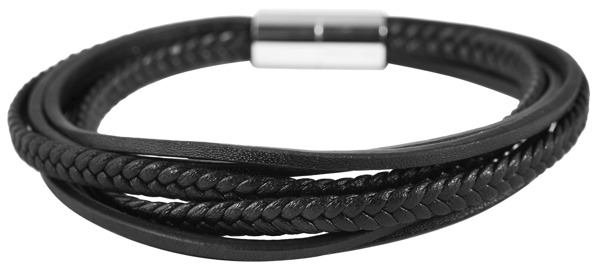 "Tigist", Akzent Armband, Echtleder/Edelstahl, Magnetschließe, 21,5 cm Dieses schlichte Armband aus Echtleder, verfügbar in schwarz, braun/schwarz oder blau/schwarz zeichnet sich durch seine hochwertigen Materialien, Echtleder und Edelstahl, sowie durch das Einarbeiten unterschiedlicher Strukturen aus. Glatte Lederriemen harmonieren mit geflochtenen Lederriemen, verbunden durch ein glänzendes Verschlussstück aus Edelstahl mit eingelassenem Magneten.