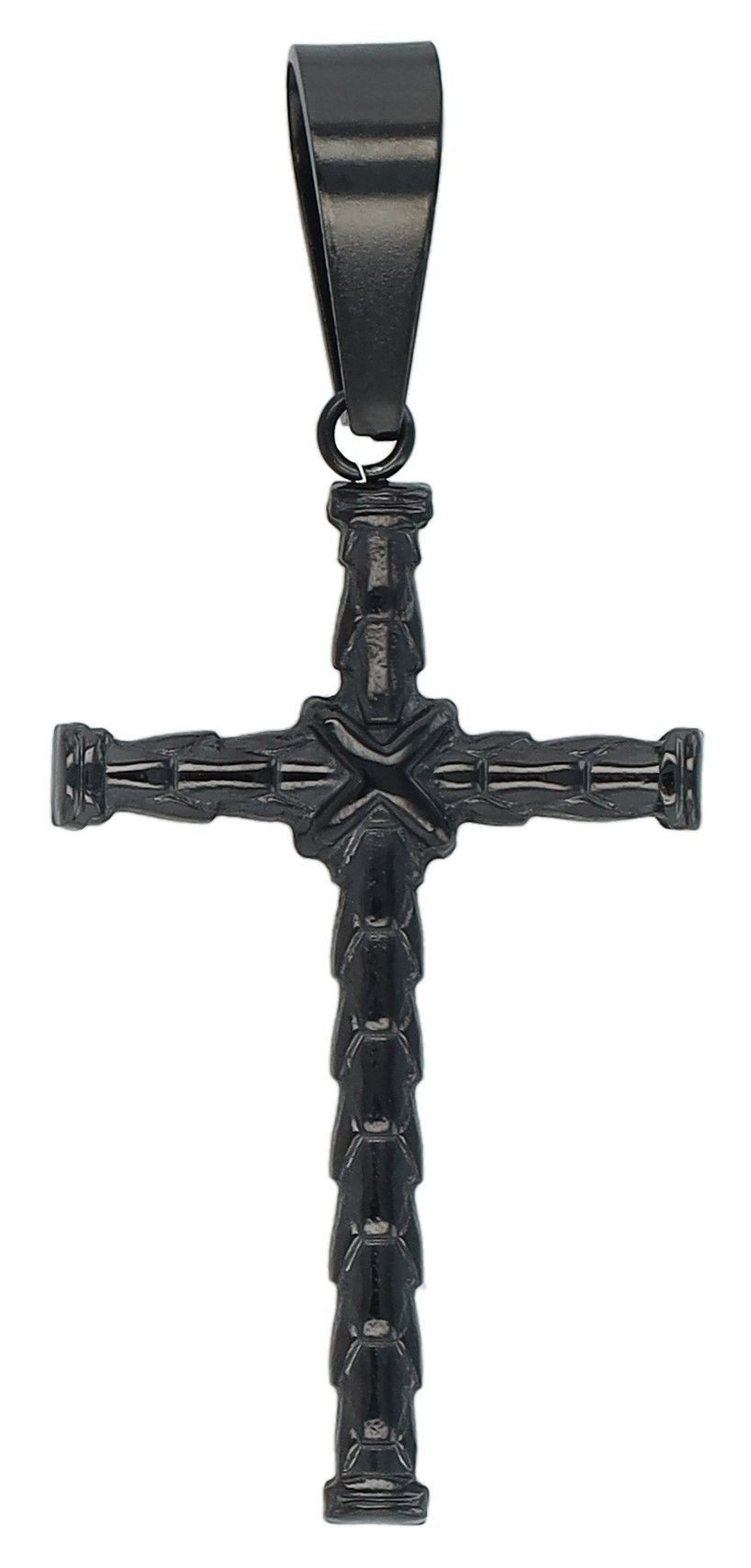 Akzent Kreuzanhänger "Nyrith" - ein besonderer Kettenanhänger mit einem ansprechenden Muster. Mit einer Размер von 47,5 mm x 27 x 4,5 mm bietet er eine beeindruckende Präsenz und ist in drei verschiedenen Farben erhältlich: Silber, Gold oder Schwarz. Hergestellt aus hochwertigem Edelstahl ist dieser Anhänger nicht nur langlebig, sondern auch robust. Das detailreiche Muster verleiht dem Kreuz eine einzigartige Ästhetik und macht es zu einem herausragenden Schmuckstück. Mit einer praktischen Öse ausgestattet, kann der Anhänger mühelos an verschiedenen Ketten befestigt werden, was ihm eine vielseitige Anwendung ermöglicht.