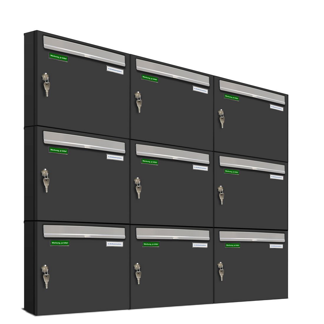 - rostfreies verzinktes Stahlblech pulverbeschichtet Anthrazitgrau RAL Farbe 7016, Einwurfklappen Weisslauminium RAL 9006