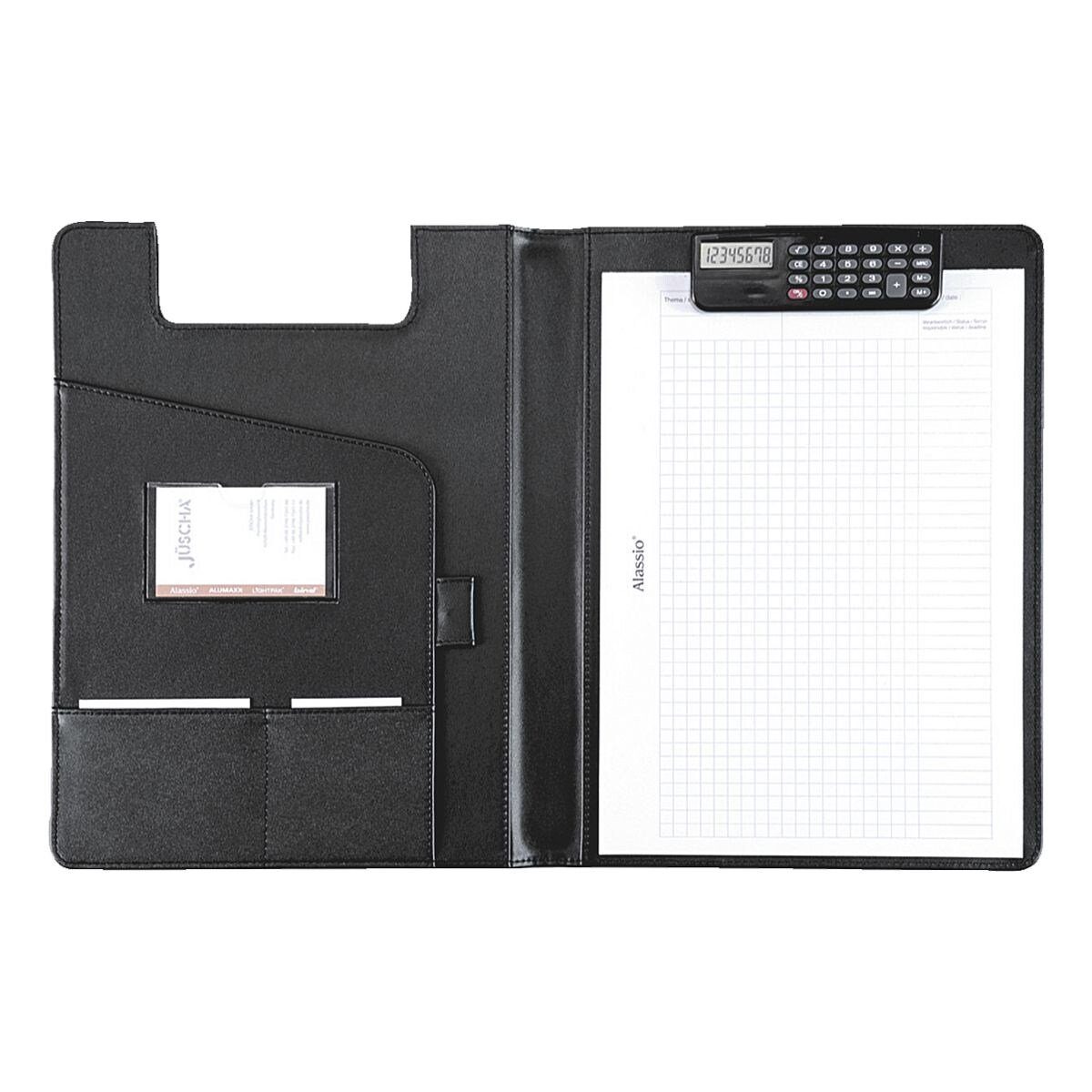 Schreibmappe »Brescia«, Ausführung: A4-Klemmbrett mit integriertem Taschenrechner, Ausstattung: A4-Einsteckfach, 2 Einsteckfächer, Klarsichtfach, Stiftschlaufe, Block, Material: Lederimitat, Farbe: schwarz, Maße (B/T/H): 25/2/33 cm