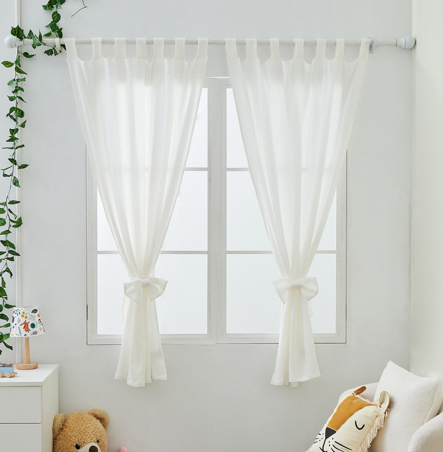 Nutzen Sie die mitgelieferten Bandschleifen, um die Vorhänge kunstvoll zu drapieren und dem Raum eine zauberhafte Atmosphäre zu verleihen. Ob in einer eleganten Schleife gebunden oder romantisch gerafft - Ihrer Kreativität sind keine Grenzen gesetzt.