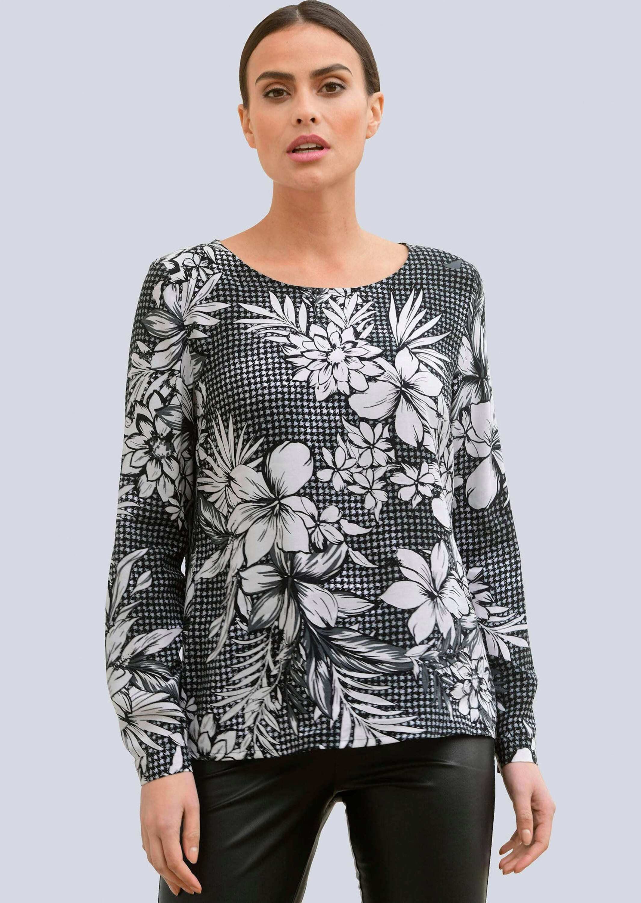 Erleben Sie Mode, die Spaß macht - zum Beispiel diese Schlupfbluse von Alba Moda. Der Floralprint und der Hahnentritt sind ein echtes Highlight. Sie verfügt über einen V-Ausschnitt. Durch seine figurumspielende Form gibt sie sich besonders schmeichelhaft. Langer Ärmel mit Krempel. Verwendet wurde pflegeleichtes Material und Viskose. Übrigens: Ein Outfit ist natürlich erst fertig, wenn auch Schuhe und Tasche passen. Zwei Dinge sollten hier harmonieren: Farbe und Stil. Tragen Sie also zum Beispiel Pumps, ist auch eine elegante Handtasche gefragt. Die Farbe muss zwar nicht mehr wie früher genau die selbe sein, "beißen" sollten sie sich aber auch nicht. Diese Schlupfbluse von Alba Moda ist nur noch wenige Klicks von Ihrem Kleiderschrank entfernt – bestellen Sie ihn am besten gleich jetzt!