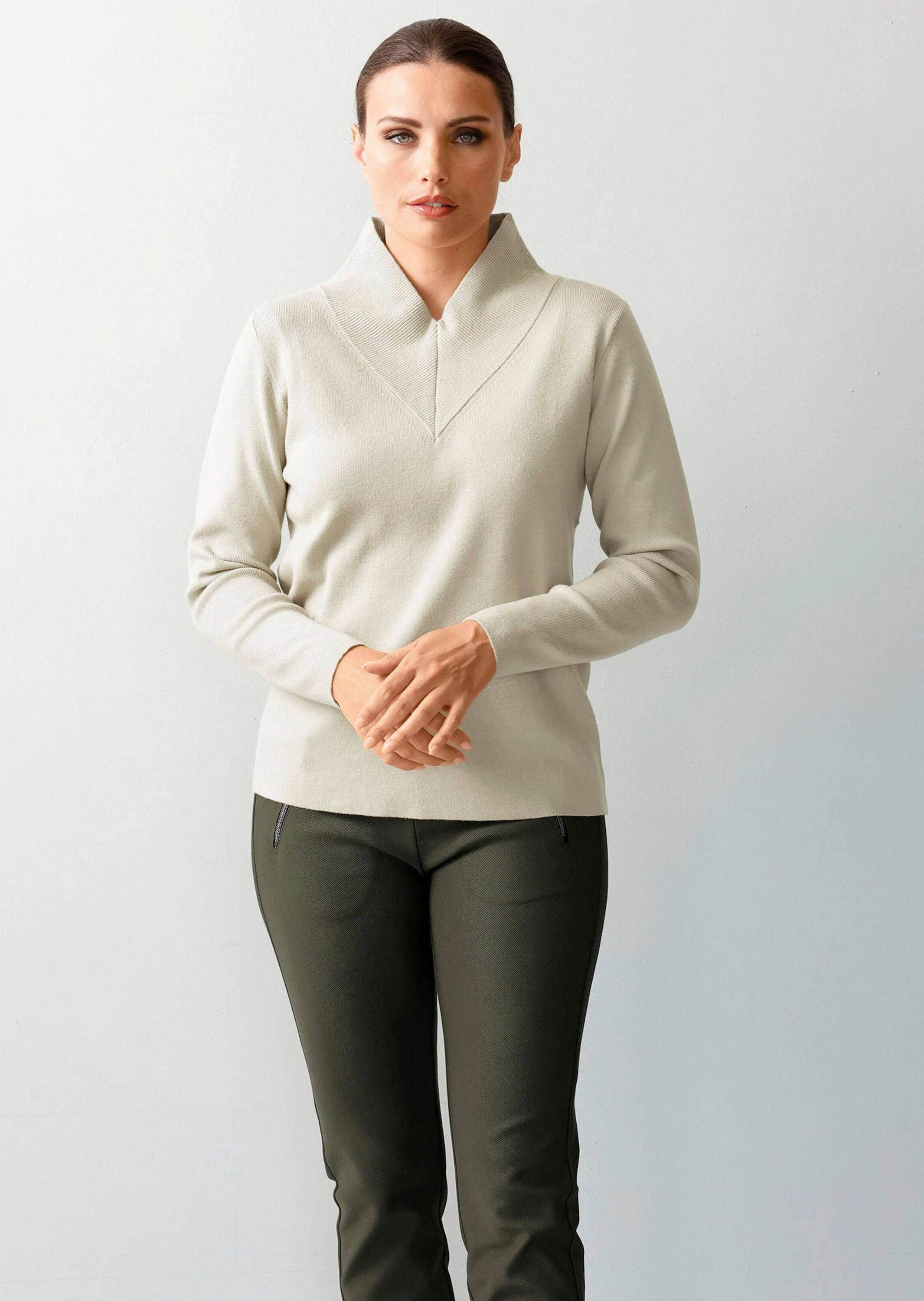 Erleben Sie Mode, die Spaß macht - zum Beispiel dieser Strickpullover von Alba Moda. Er hat einen V-Ausschnitt. Außerdem ist er gerade geschnitten. Langer Ärmel mit geradem Abschluss. Gefertigt aus pflegeleichtem Material und Viskose. Und einen Style-Tipp haben wir noch für Sie: Wenn Sie Tasche und Schuhe zu Ihrem Outfit auswählen, müssen diese nicht zwangsläufig die gleiche Farbe haben. Wichtig ist, dass der Stil passt und die Farben harmonieren. Schön ist es auch, wenn sich ein Detail oder Muster der Kleidung in den Accessoires wiederfindet. Bestellen Sie den Strickpullover von Alba Moda bequem in unserem Onlineshop und Ihr neues Lieblingsteil ist schon in Kürze bei Ihnen zu Hause!
