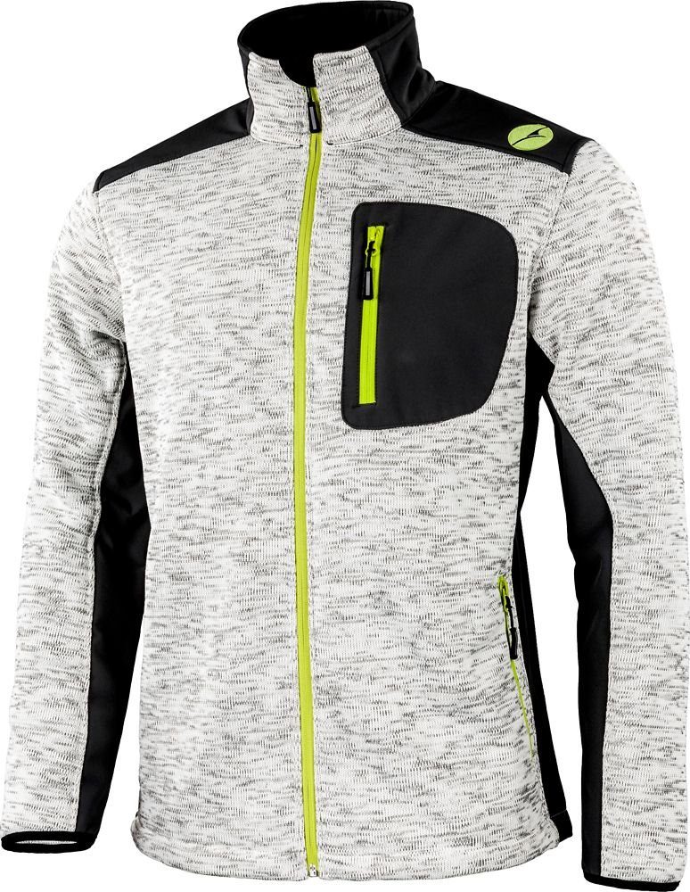 Strick trifft Softshell! Mit der Strick-/Softshelljacke STIRLING profitierst du von den besten Eigenschaften der beiden Materialien: Das angenehm weiche Strickfleece hält deinen Körper warm und sorgt für kuscheligen Tragekomfort, während die Softshelleinsätze die Jacke widerstandsfähiger und langlebiger machen. Praktische Aspekte sind außerdem eine Innentasche mit Reißverschluss und aufgesetzter Handytasche, ein hochschließbarer Stehkragen und windabweisendes Stretchfutter in Vorderteil und Armen. Hergestellt in hellgrau mit hellgrünen Reißverschlüssen und Logostickerei überzeugt STIRLING auch optisch, egal ob bei der Arbeit oder im Freizeitbereich!·