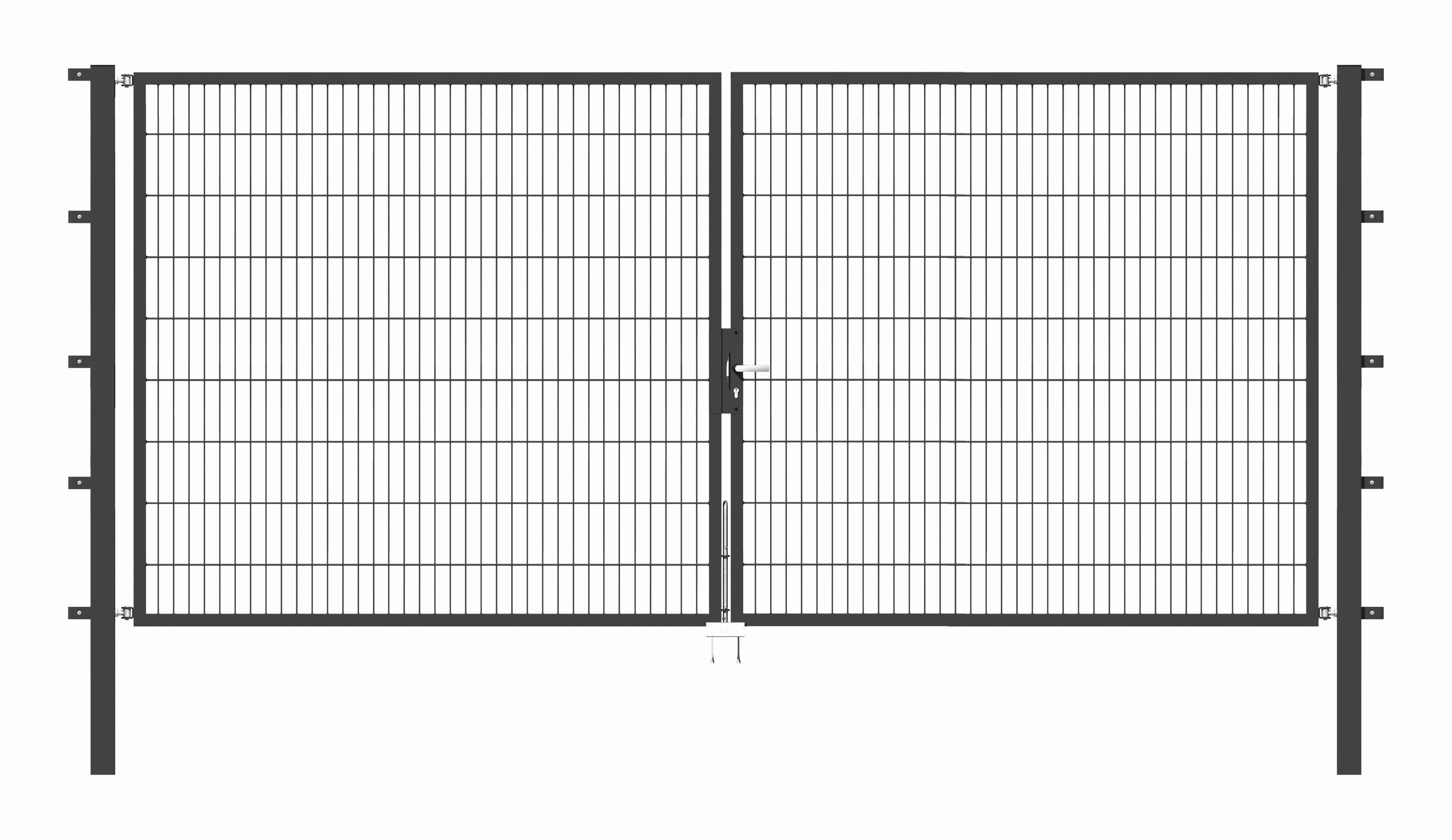 • Zauntor in der Ausführung zum Einbetonieren und einer mittig geteilten Torbreite, mit 80 x 80 mm Kombipfosten.