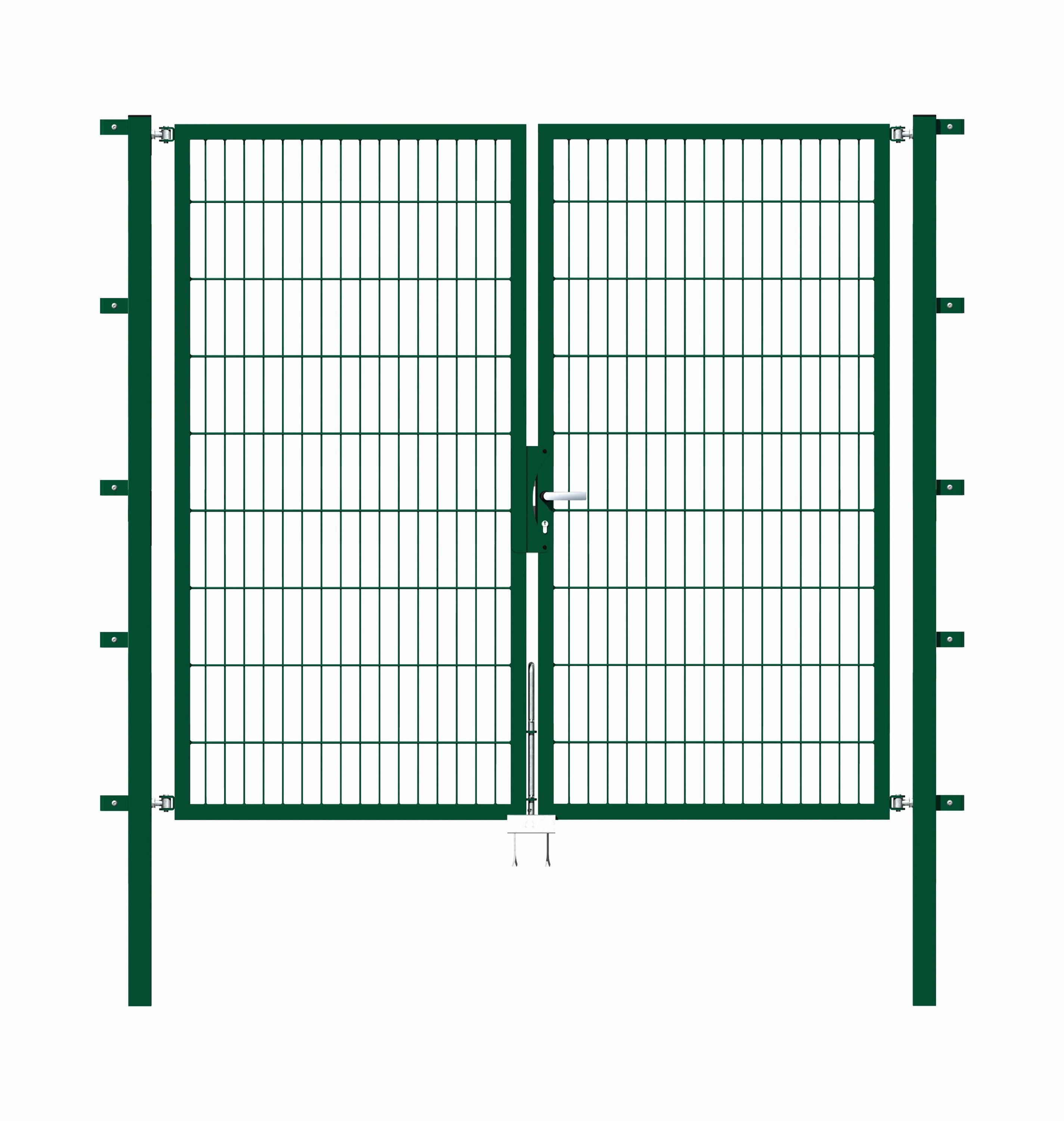 • Maße des Gartentors: Nennbreite: 2000 mm, lichte Breite: 1970 mm, Durchgangsbreite: 1854 mm, Rahmenbreite Schließflügel: 910 mm, Rahmenbreite Zweitflügel: 910 mm, Höhe: 1