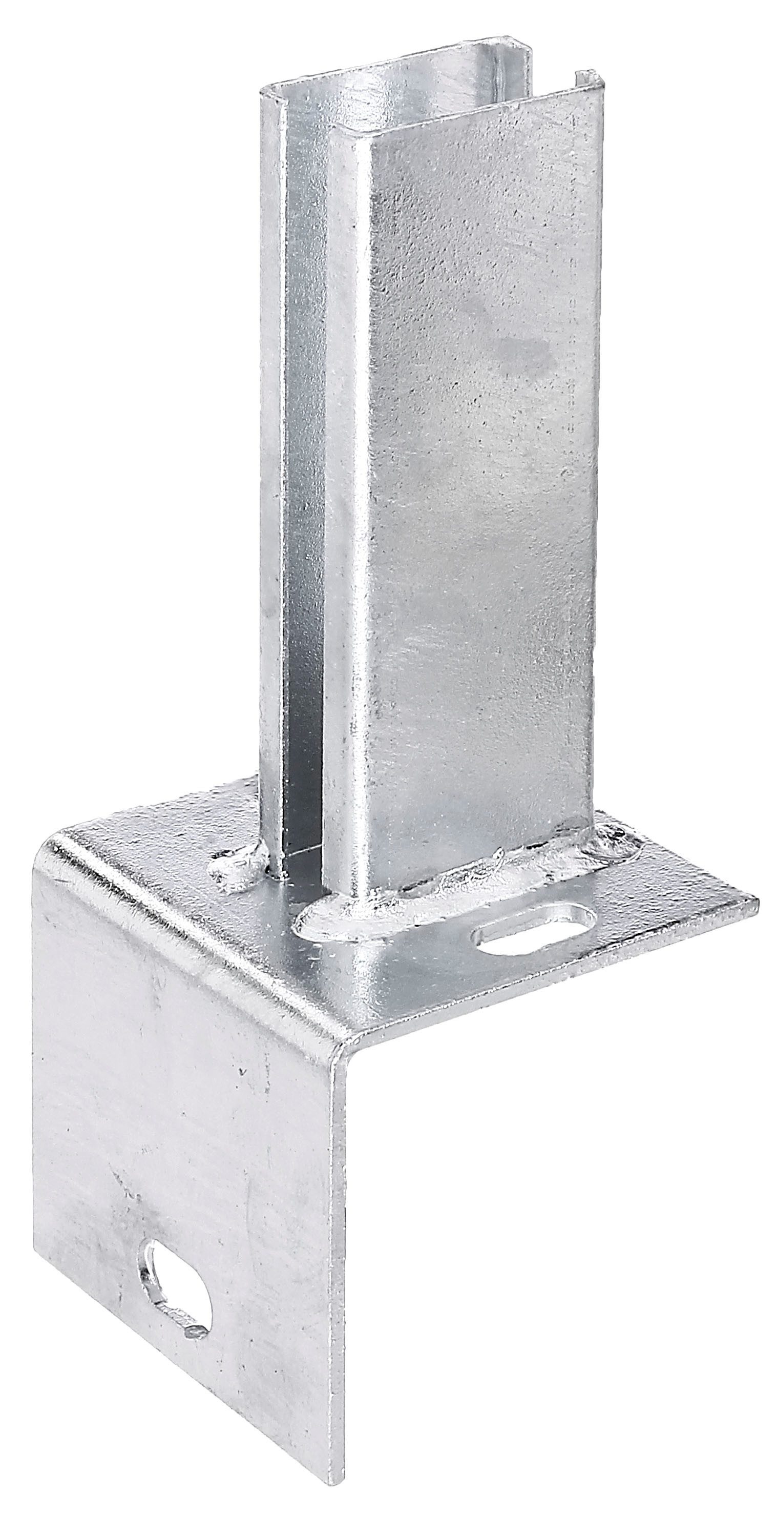 Abmessungen: Platte 94 x 100 mm - Aufnahmewinkel 84 x 100 x 4 mm - Aufnahme 55 x 34 mm - für Pfosten 60 x 40 mm - Anzahl Löcher 3 - Loch 24,5 x 12,5 mm