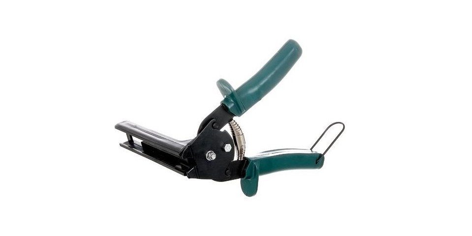 Zur Befestigung von Maschendrahtgeflecht am Spanndraht. Drahtgeflecht und Spanndraht werden so mit einer Drahtklammer fest verbunden. Zwischen zwei Pfosten sollte das Maschengeflecht je zweimal an den Spanndrähten befestigt werden, so kann der Zaun sich weder wölben noch durchhängen.