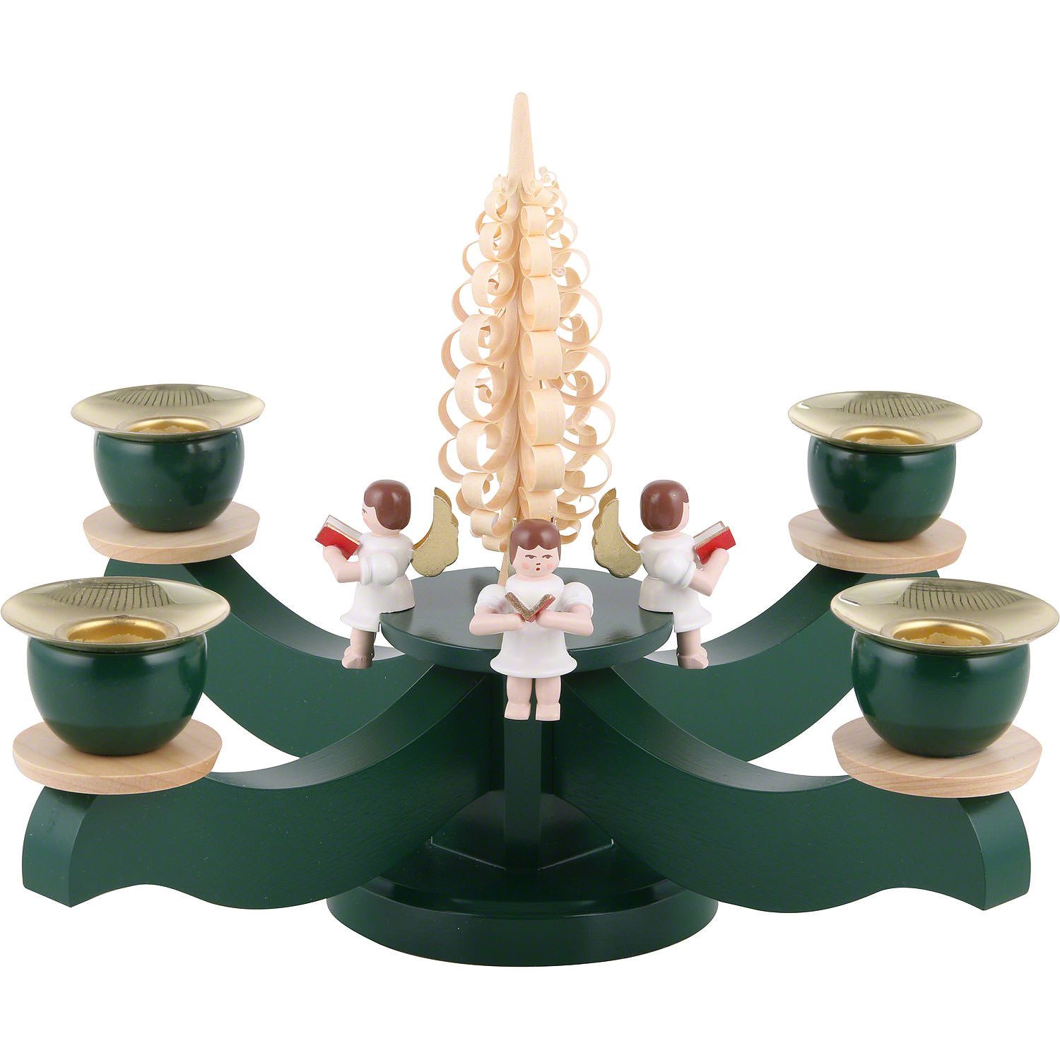 Albin Preissler Schwibbogen Adventsleuchter grün vier sitzende Engel mit Spanbaum (22x19cm) von Al