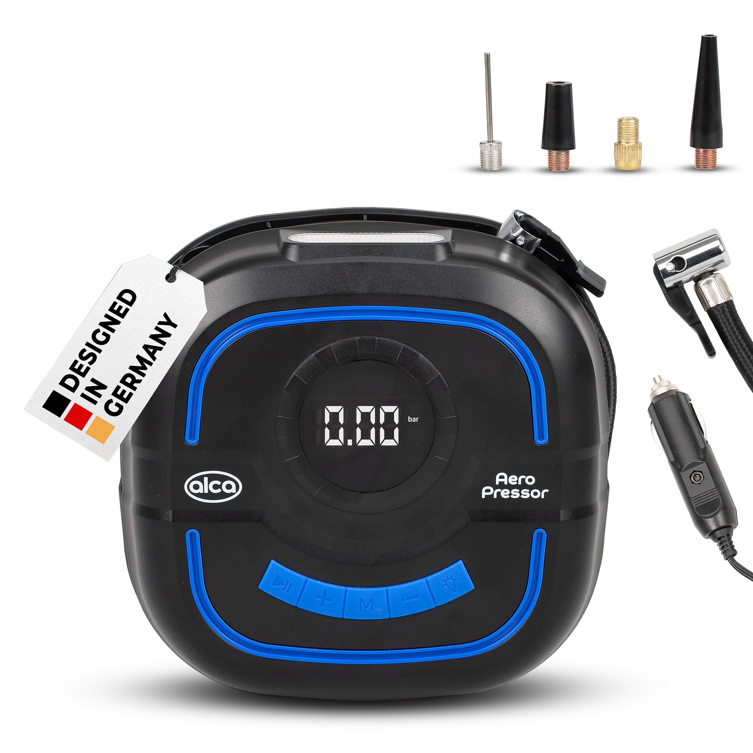 Lieferumfang | 1 Kompressor1 Metall-Adapter für Fahrradreifen bzw. Ventile1 Metall-Adapter für Bälle2 Kunststoffadapter für Luftmatratzen und andere Objekte1 Bedienungsanleitung |